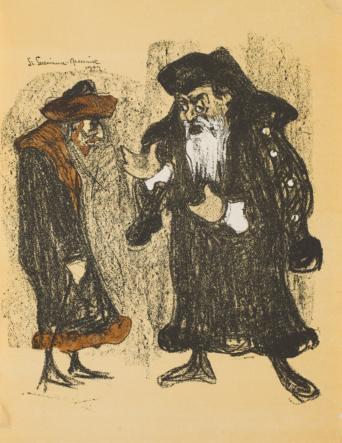 24. Stanisław Szreniawa-Rzecki(1888-1972), Józef Kotarbiński jako Shylock i Stanisław Bronicz jako Tubax w sztuce Szekspira Kupiec Wenecki, litografia/ papier, 36,2 x 28,3 cm