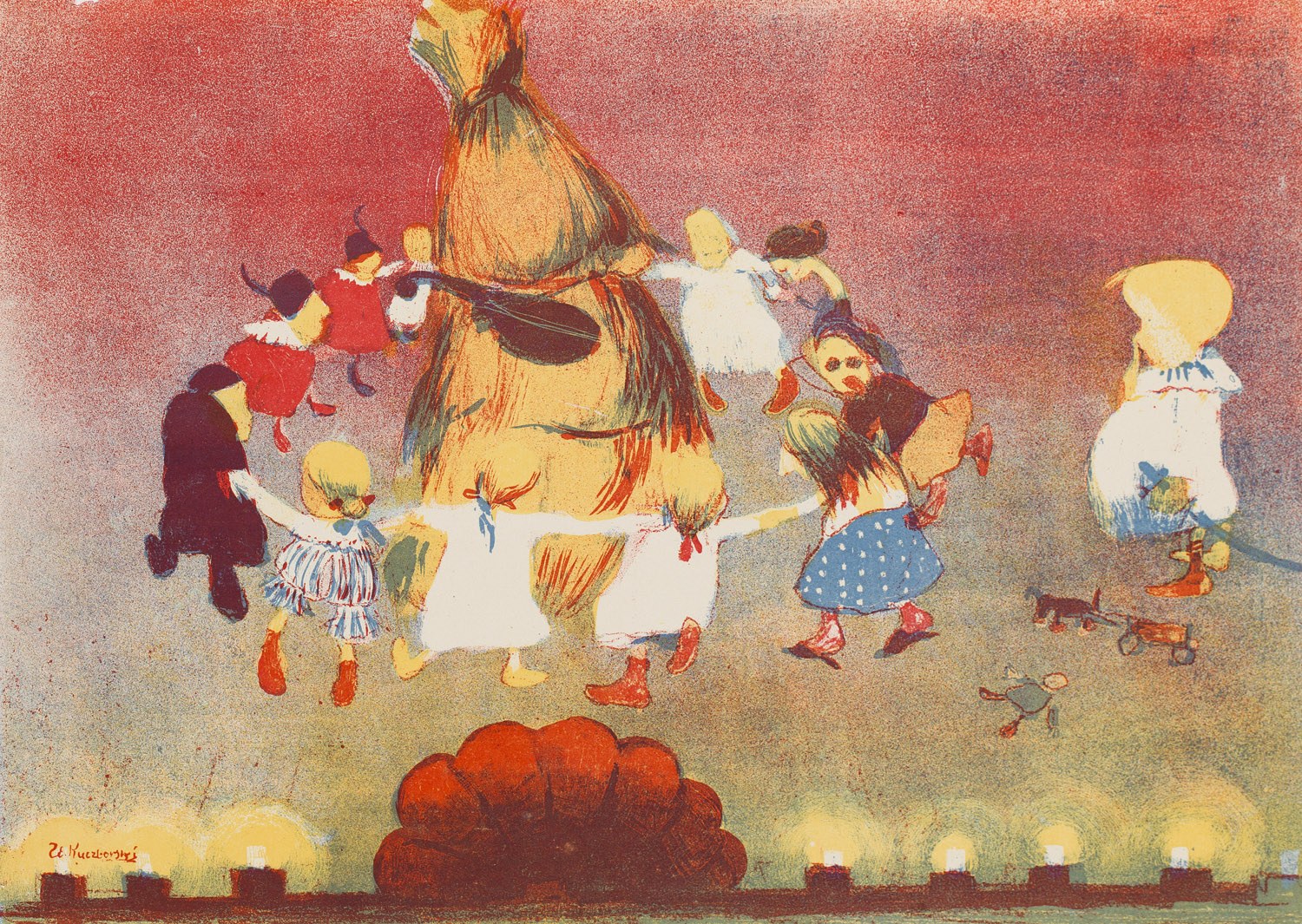 28. Stanisław Kuczborski (1881-1911), Taniec Chochoła ze sztuki Stanisława Wyspiańskiego Wesele, litografia/ papier, 28,4 x 39,4 cm