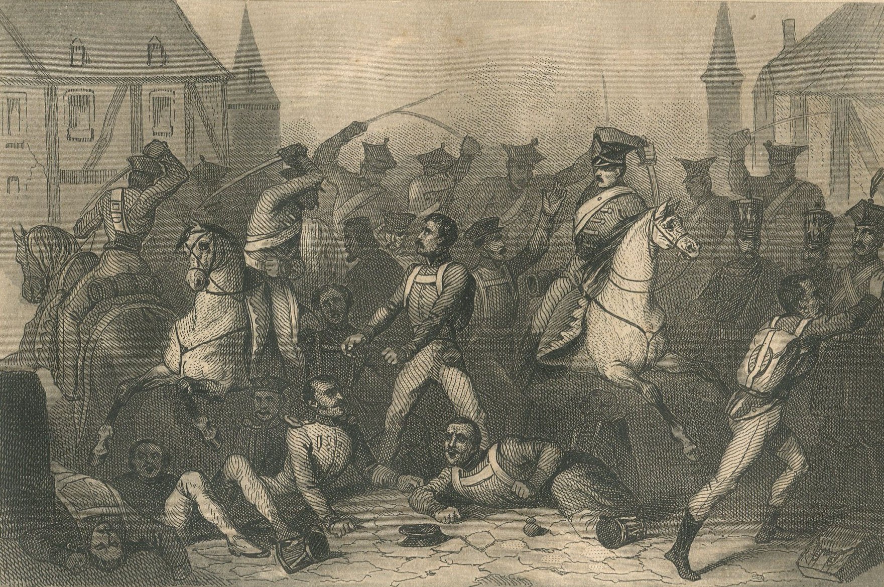 XIX-wieczny staloryt przedstawiający zamieszki podczas tzw. rewolucji krakowskiej w 1846 roku.