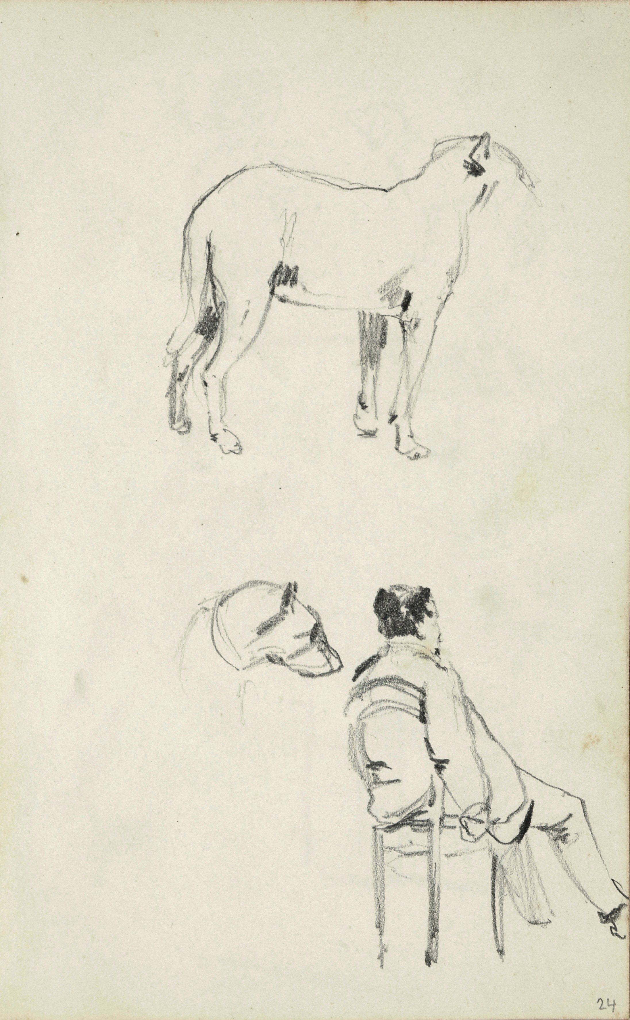 Stanisław KACZOR BATOWSKI (1866-1946), Szkice: mężczyzny siedzącego na krześle, ukazanego z prawego boku, od tyłu oraz psa