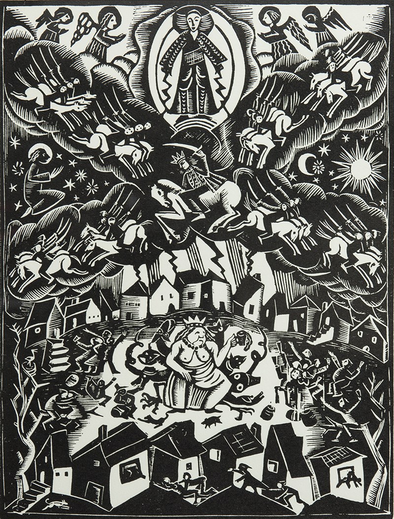 drzeworyt, papier, 19 x 14 cm (zadruk), z teki "Objawienie św. Jana Teologa. Drzeworytów 5 BG Krasnodębskiej", Warszawa 1925 (nakł. 40 egz.).
