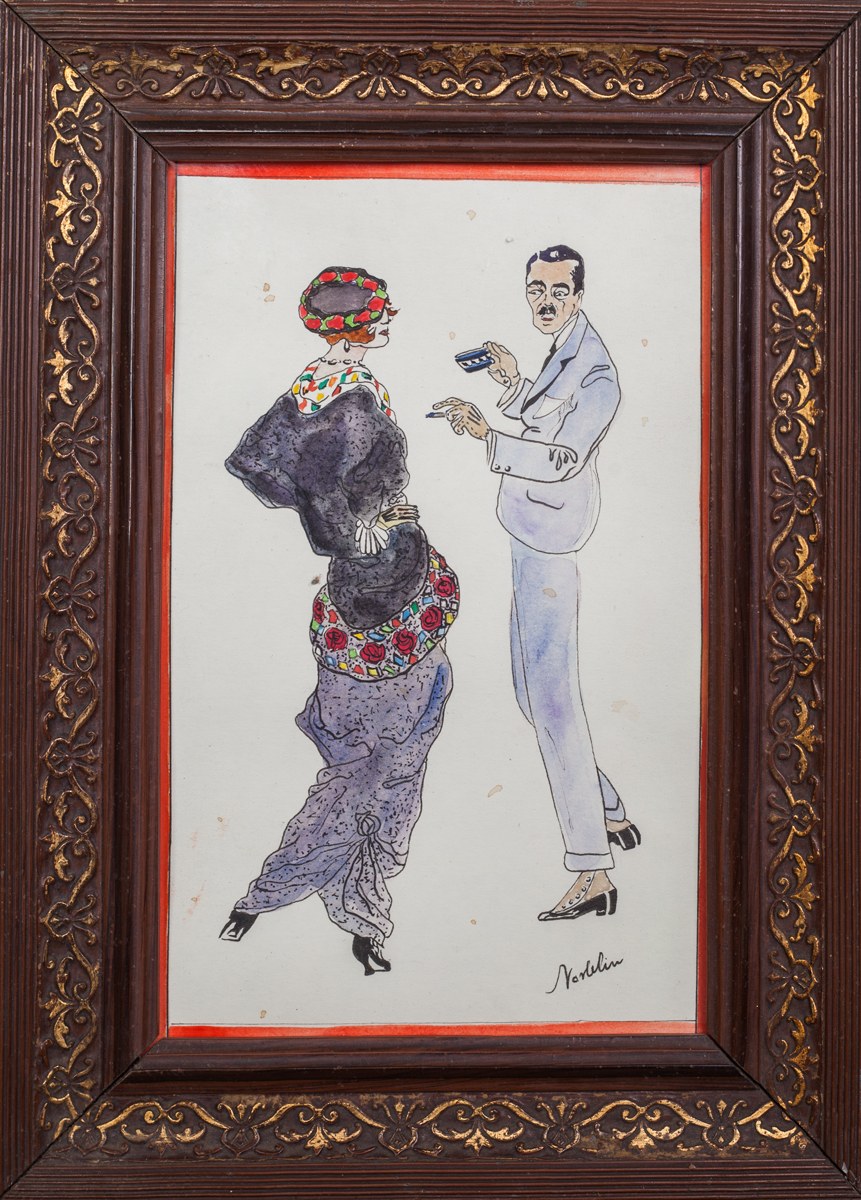 Rysunek tuszem, lawowany akwarelą, sygn. p.d.: "Norblin"