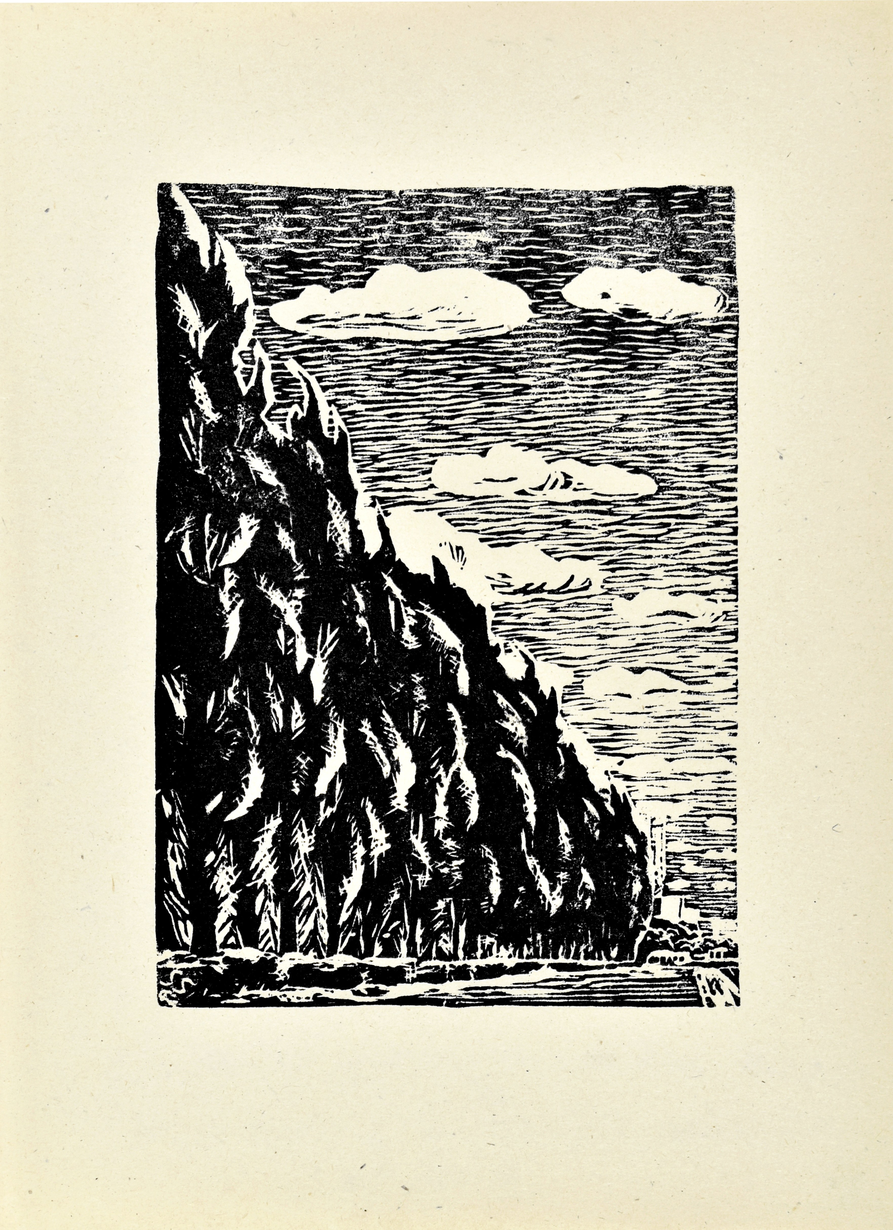 linoryt, papier; 19 x 13,5 cm (wymiar kompozycji);
