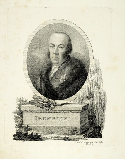 Portr. BN 5578. Miedzioryt punktowy form. 17,5x13 na ark. 30,5x21,5 cm. Pod kompozycją z prawej sygnatura na płycie: "Gravé à Vienne par Dav[id] Weiss" i odręcznie dopisana ołówkiem data 1815. Rycina pochodzi z książki S. Tembeckiego "Opisanie Zofiówki" (Wiedeń 1815). Niewielkie miejscowe zażółcenia arkusza, poza tym stan dobry.