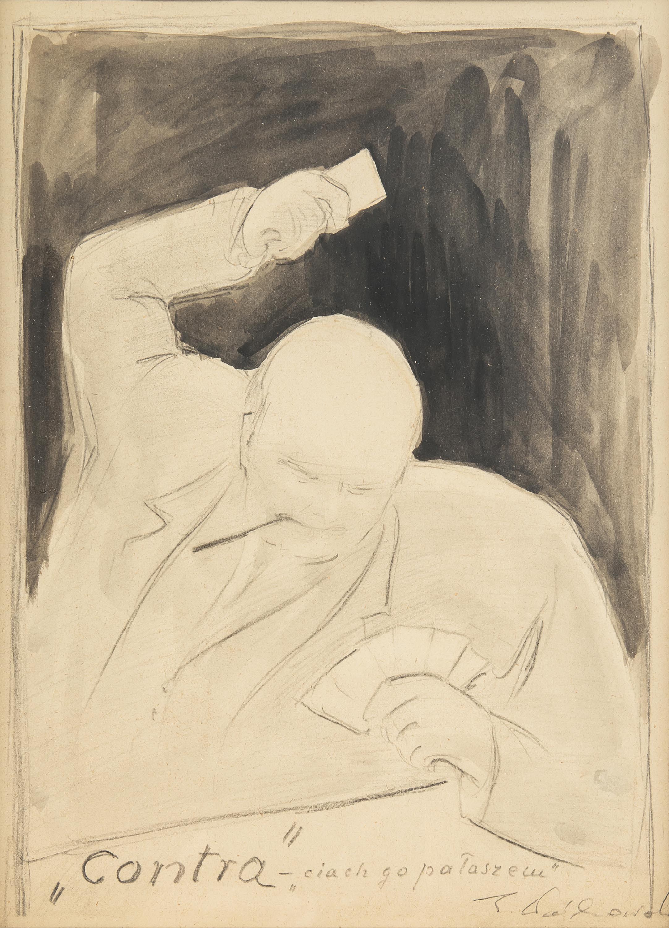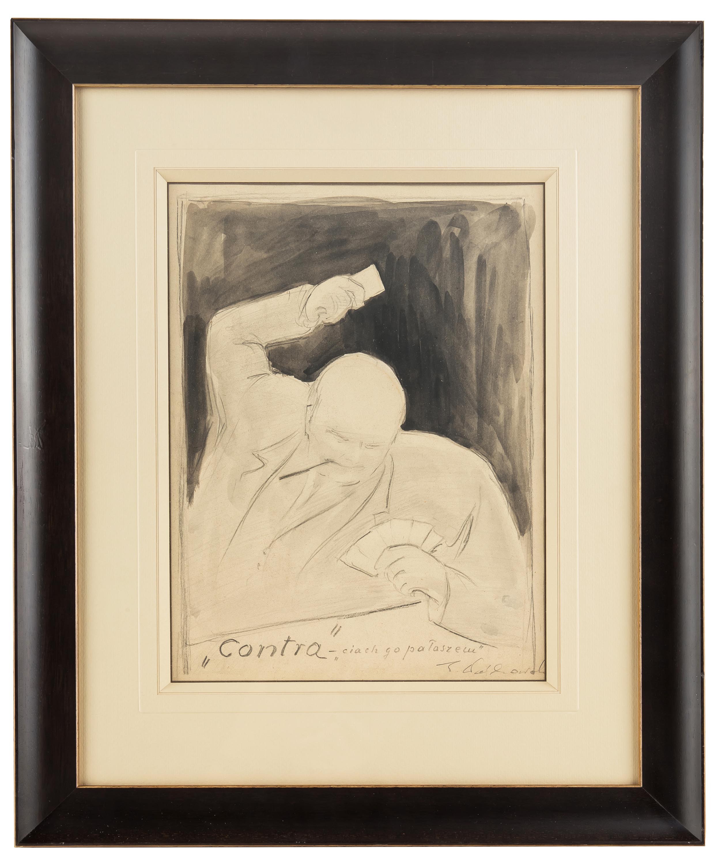 tech. mieszana, papier, 33 x 24 cm w świetle passe-partut, sygn. p.d.: T.Waśkowski, opisany śr.d.: "Contra" - "ciach go pałaszem"