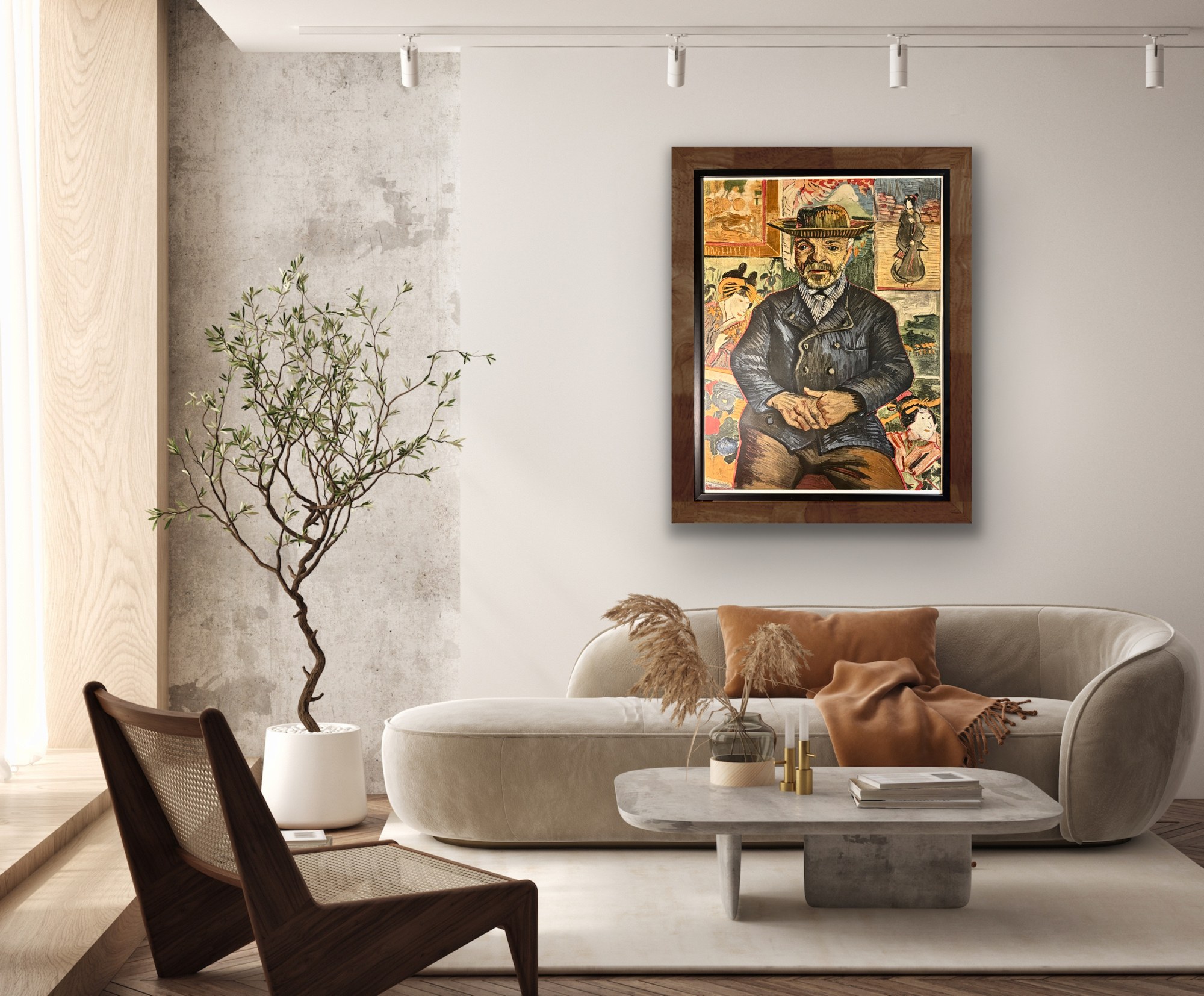 Van Gogh namalował trzy portrety Tanguy'ego między 1886 a 1888 rokiem, które dokumentują jego ewolucję artystyczną po przyjeździe do Paryża i zetknięciu się z nowymi stylami. Najbardziej rozpoznawalny z tych portretów (ostateczna wersja z 1887 roku, znajdująca się w Musée Rodin w Paryżu. Jest wyjątkowy, ponieważ łączy wpływ impresjonizmu, postimpresjonizmu i przede wszystkim japońskich drzeworytów (ukiyo-e).
