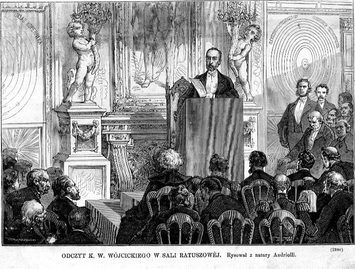Tytuł: Odczyt K. W. Wójcickiego w sali ratuszowej / "ODCZYT K. W. WÓJCICKIEGO W SALI RATUSZOWÉJ. Rysował z natury Andriolli. (2390)"