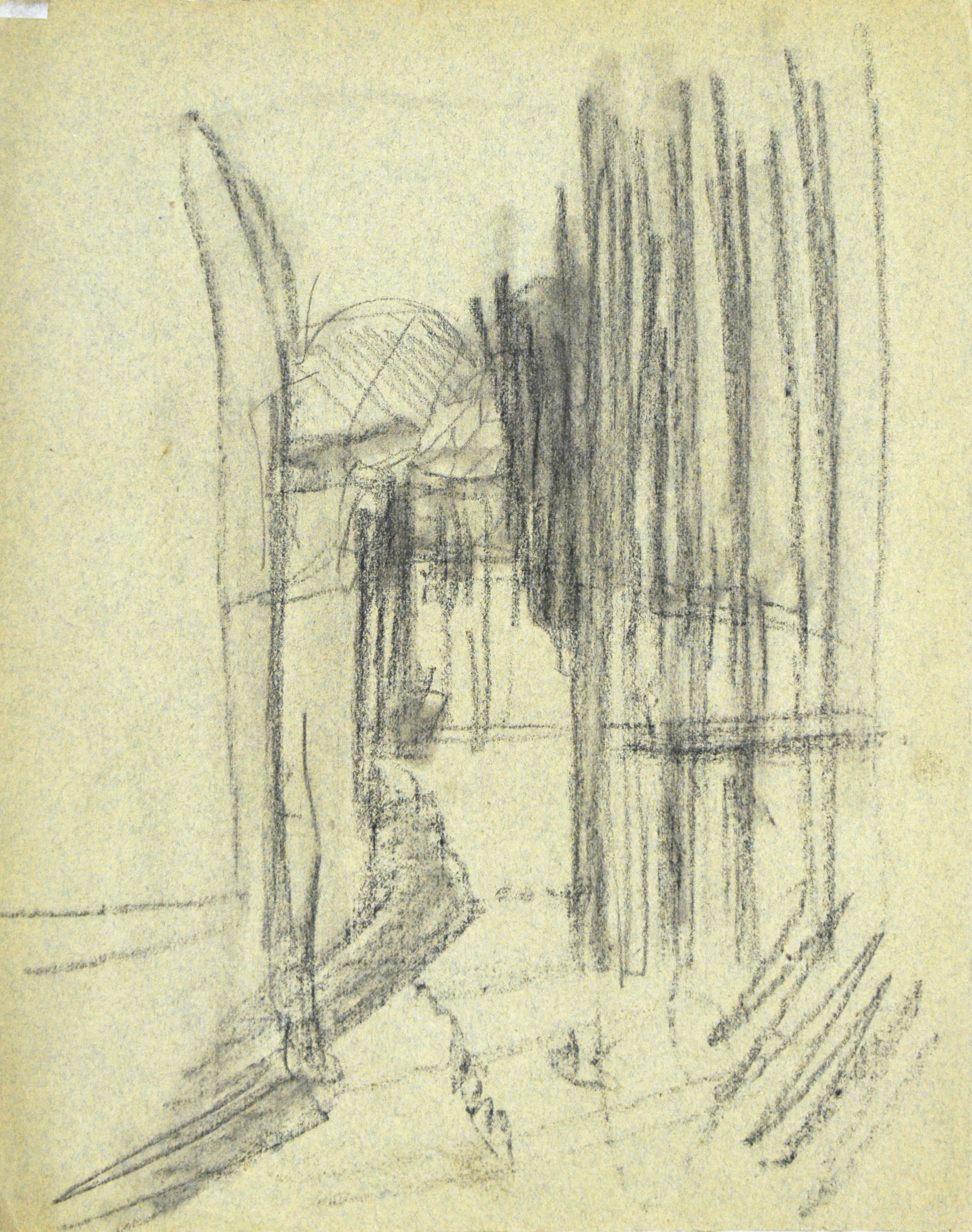 ołówek, węgiel, papier; 31,3 x 24,7 cm;