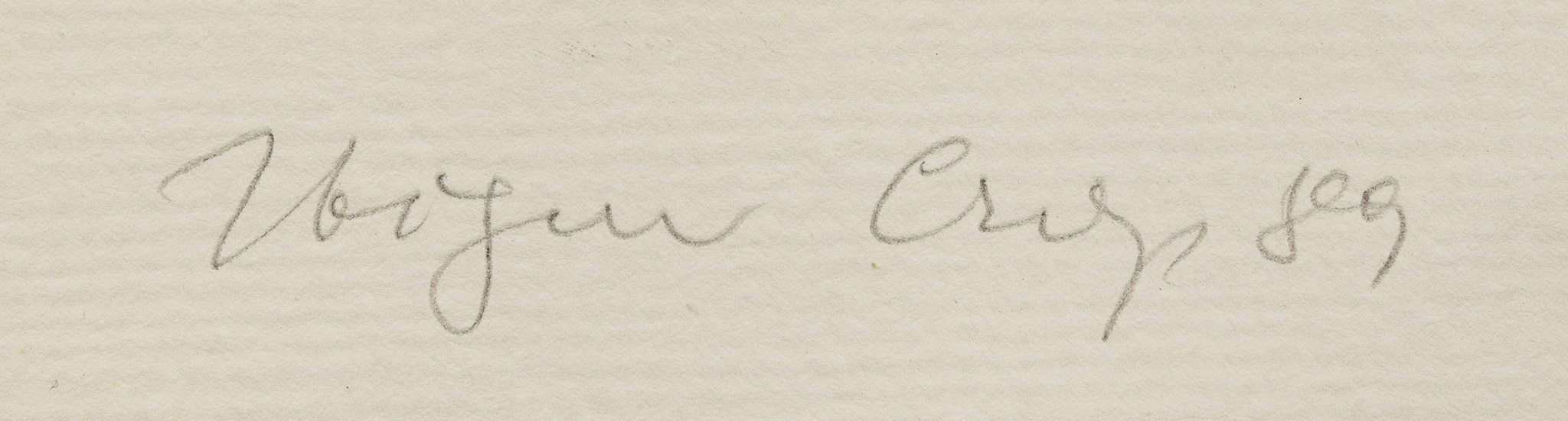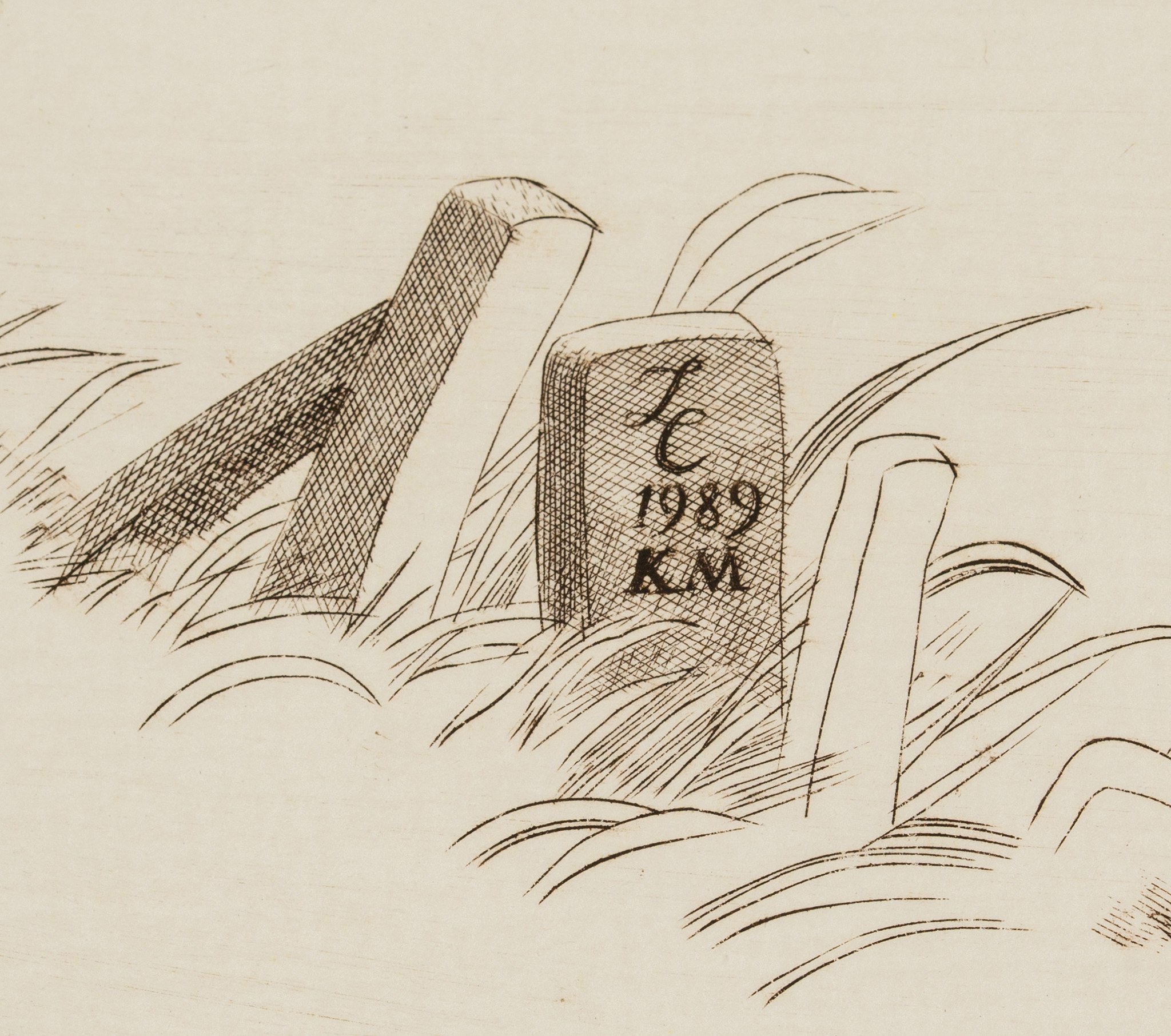 miedzioryt na papierze, 1989 rok, 39 x 49 cm, sygnowany i datowany na płycie w lewym, dolnym rogu: "ZC | 1989 | KM" oraz ołówkiem poniżej kompozycji: "I/92 Copperplate | Zbigniew Czop 89"