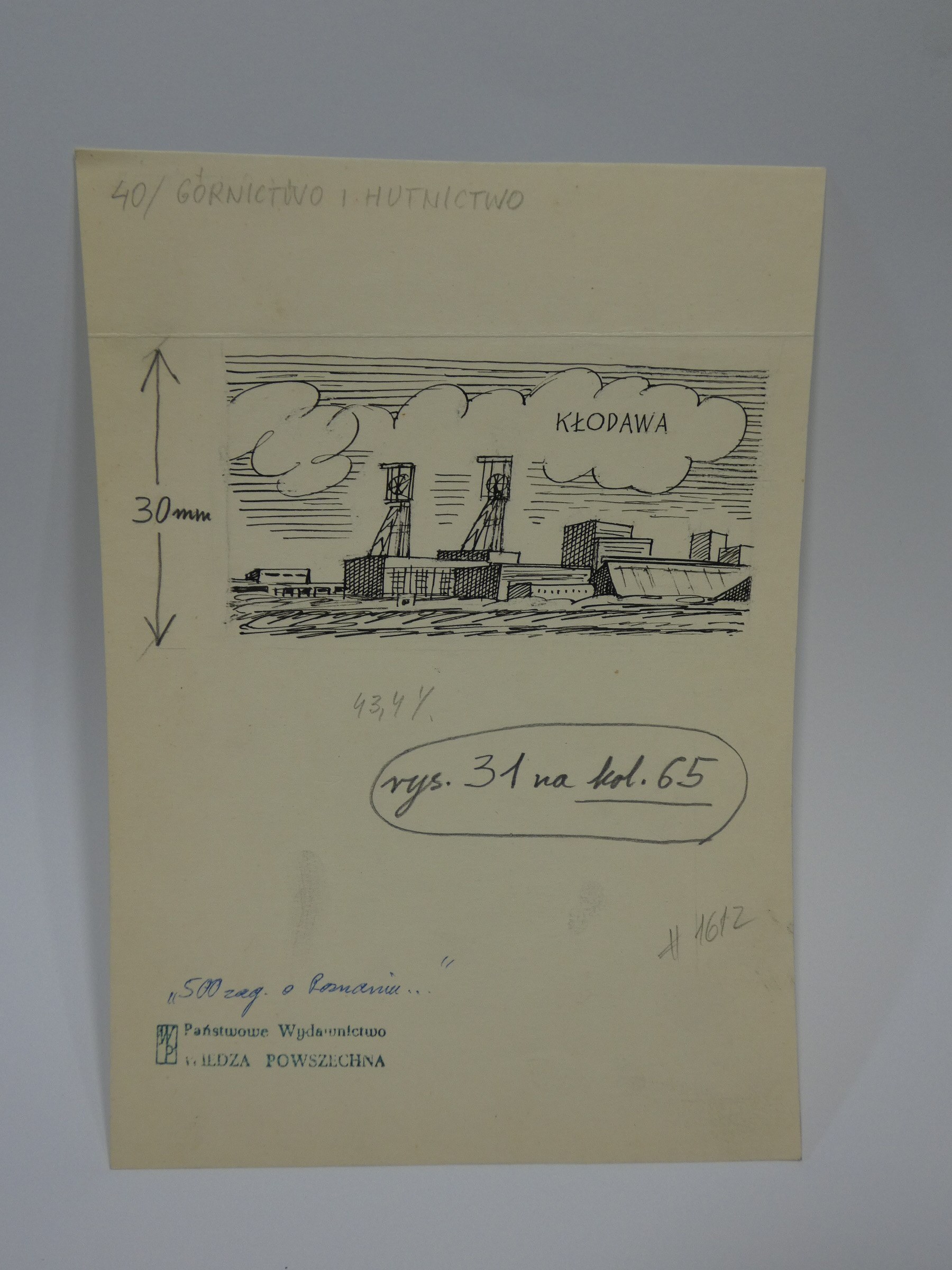 Tusz , papier - praca zawiera notatki wydawnicze oraz stempel wydawnictwa Wiedza Powszechna