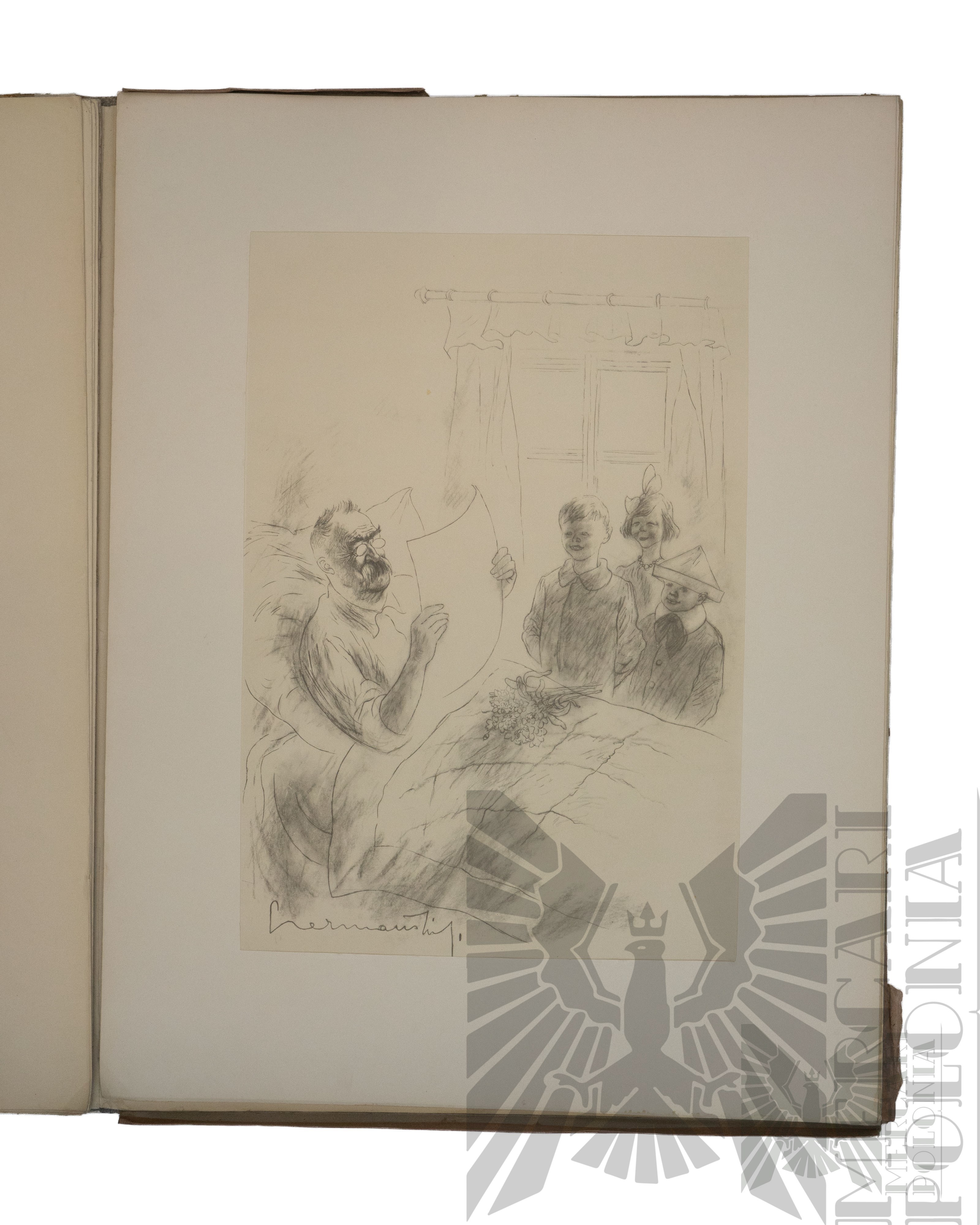 Przedmiotowa litografia pochodzi z teki, którą Piłsudski kazał powiesić sobie w Belwederze.