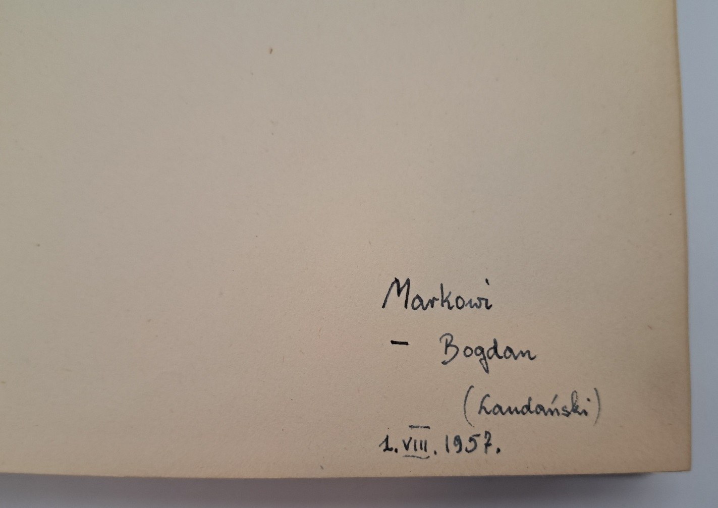 Stan: kompletna i spójna, bez podkreśleń i podpisów w tekście, na wyklejce dedykacja z autografem, obwoluta z naddarciami i ubytkami na krawędziach, drobne przybrudzenia tylnej części obwoluty