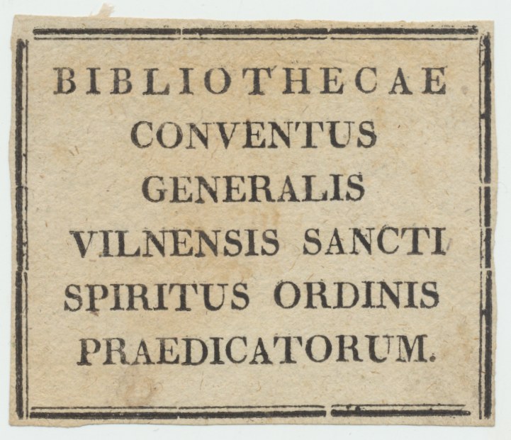 Ex libris z biblioteki konwentu wileńskiego Świętego Ducha.