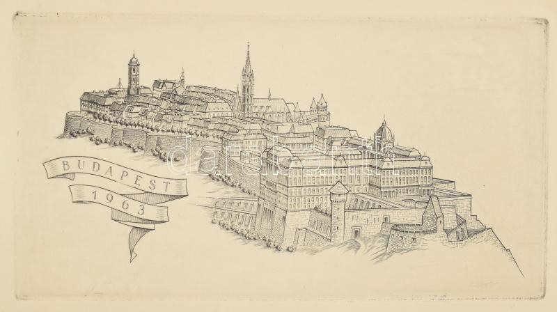 Jelzés nélkül: A Budai Vár 1963. Rézkarc, papír, 7,5x14 cm