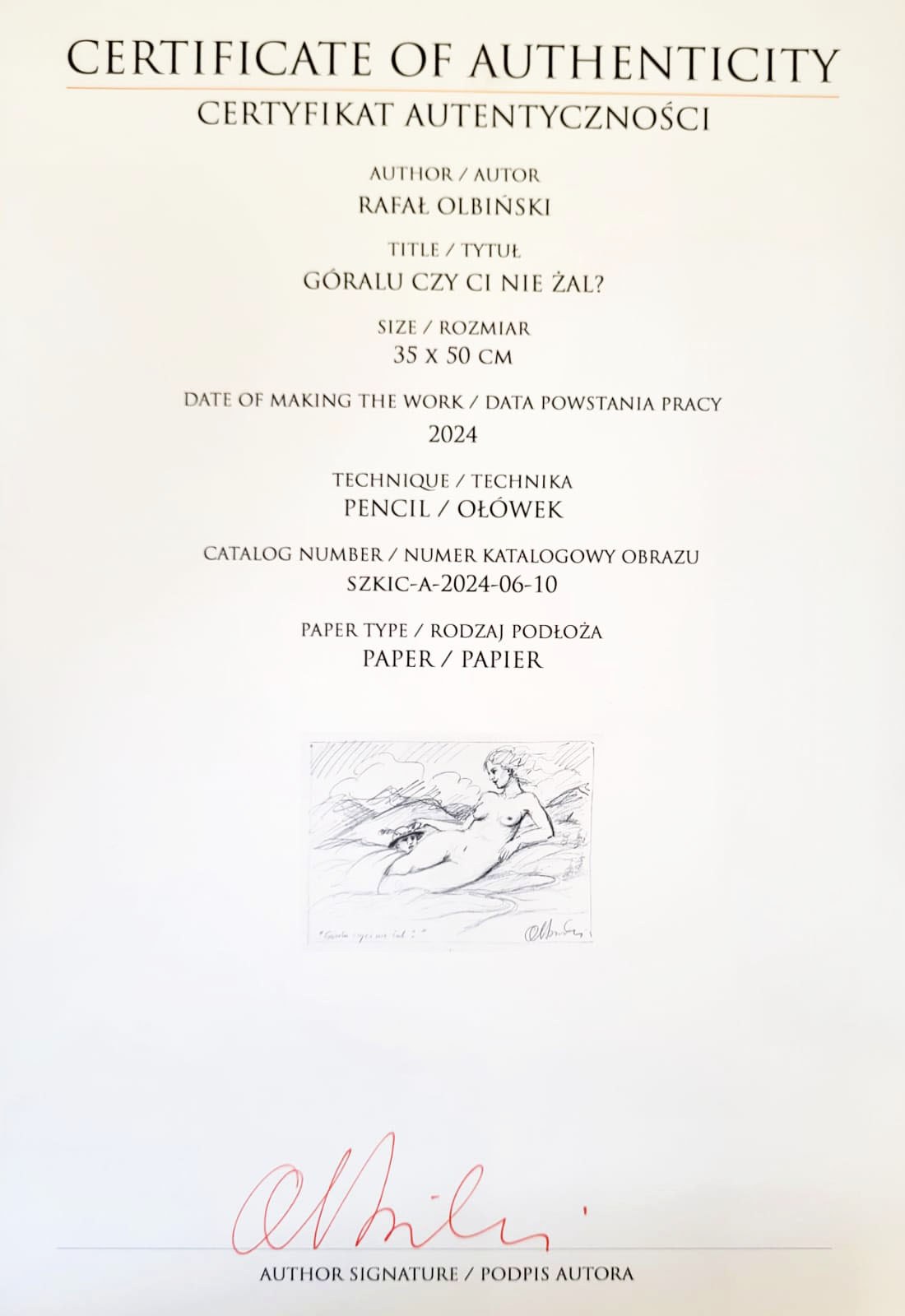 ołówek na papierze, 46.5 x 33 cm ( w świetle passe - partout), 72 x 58 (wymiary z oprawą);