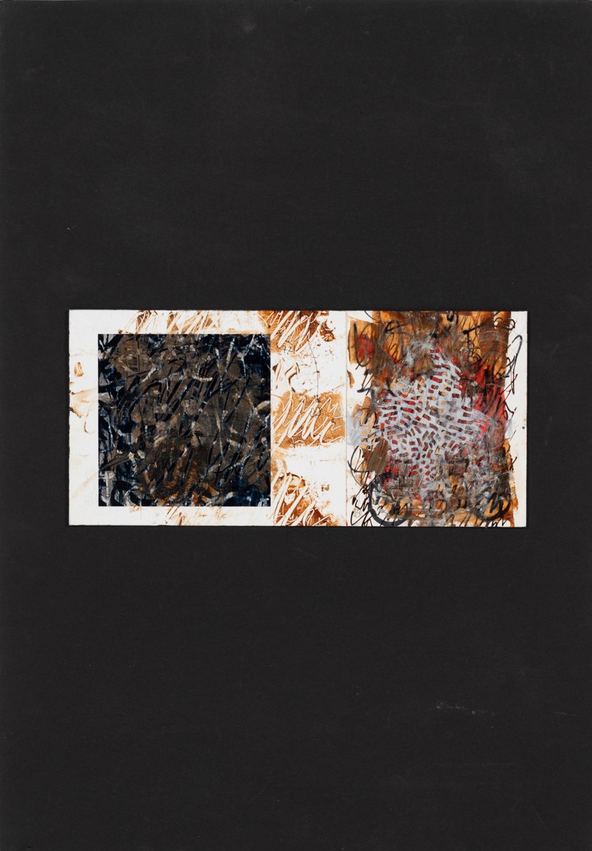 kolaż, technika mieszana, karton, pianka, 12,5x26,5 cm kompozycja, 50x35 cm arkusz