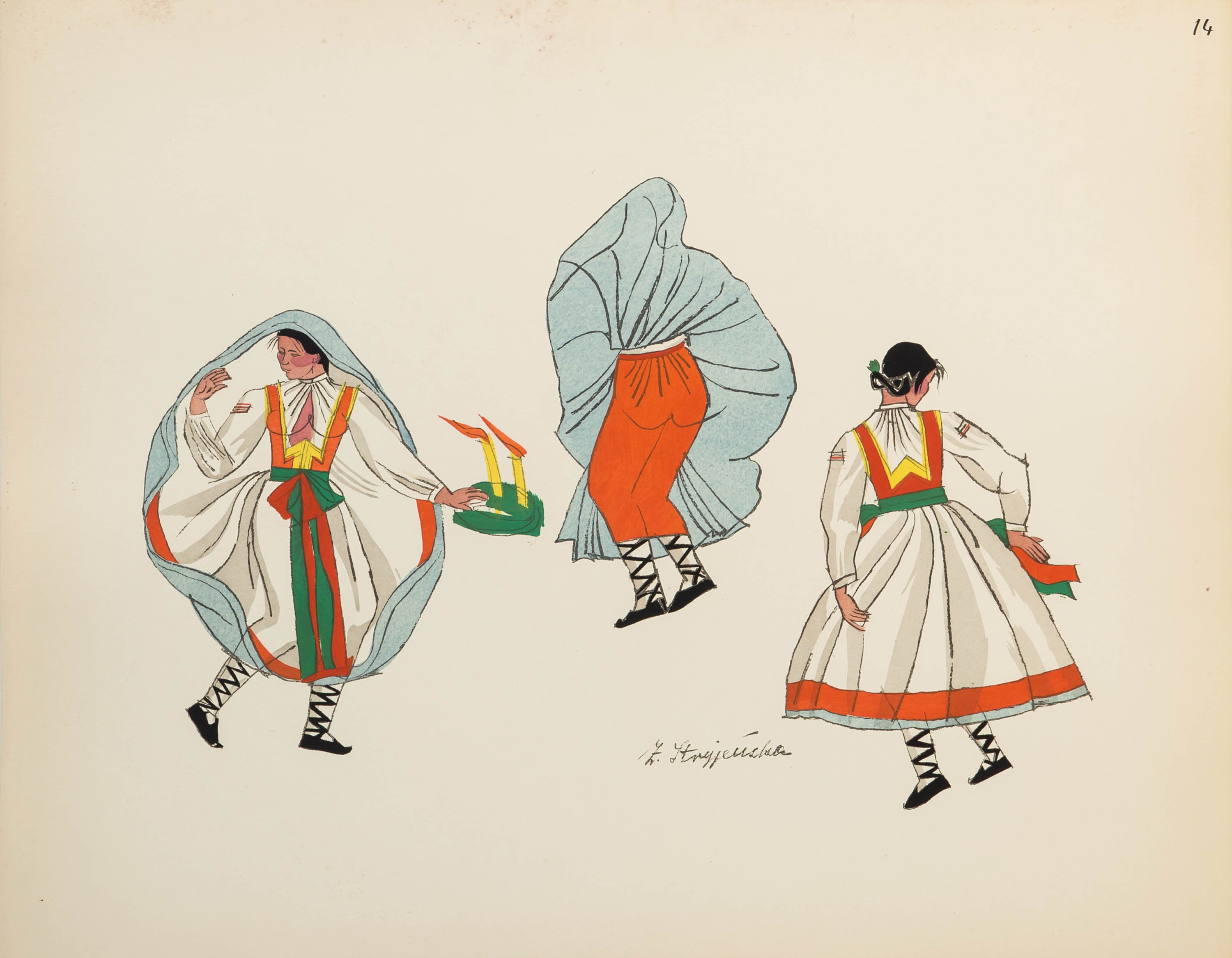 litografia barwana, papier, 39,50 x 50 cm, sygn. na płycie: Z. Stryjeńska, Tbl. 14 z z teki: Polish Peasants Costumes, Szwedzicki, Nicea, 1939