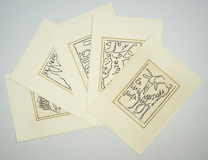 Pięć sygnowanych ekslibrisów drzeworytowych J. Panka dla J. Matysioka, 1965-1966.