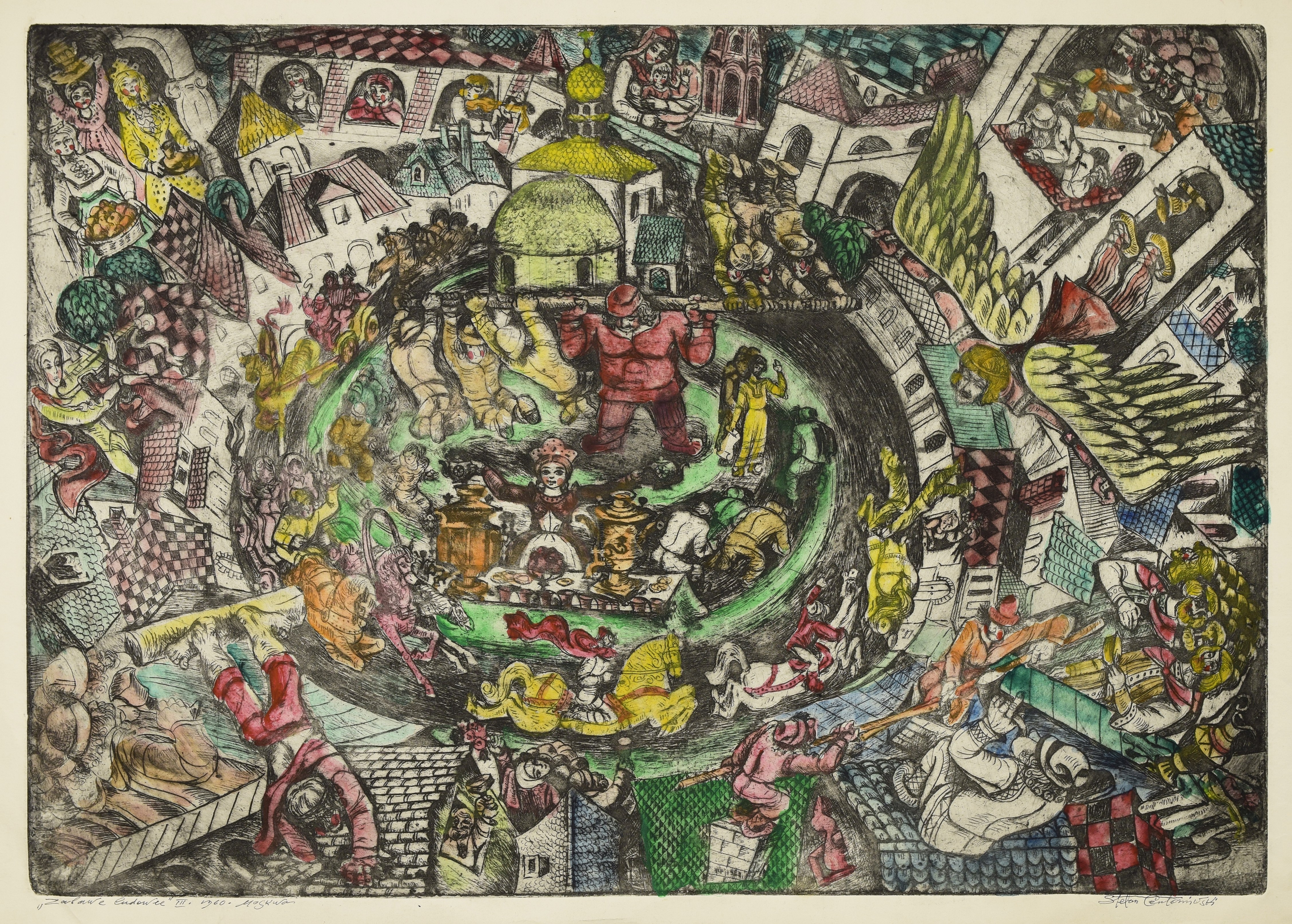 grafika wym. papieru 50 x 72,5 cm; sygn. p. d. Stefan Centomirski z lewej "Zabawe cudowce" III 1960.Moskwa