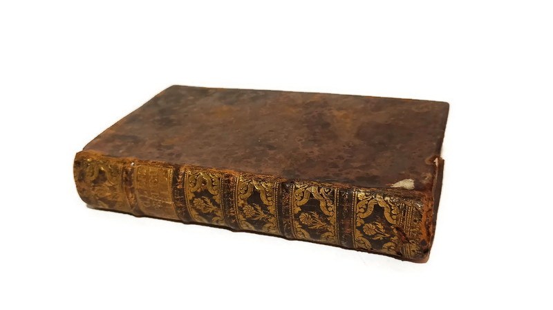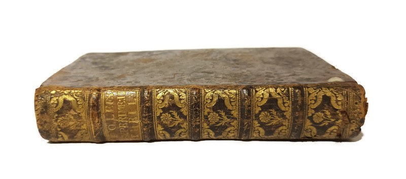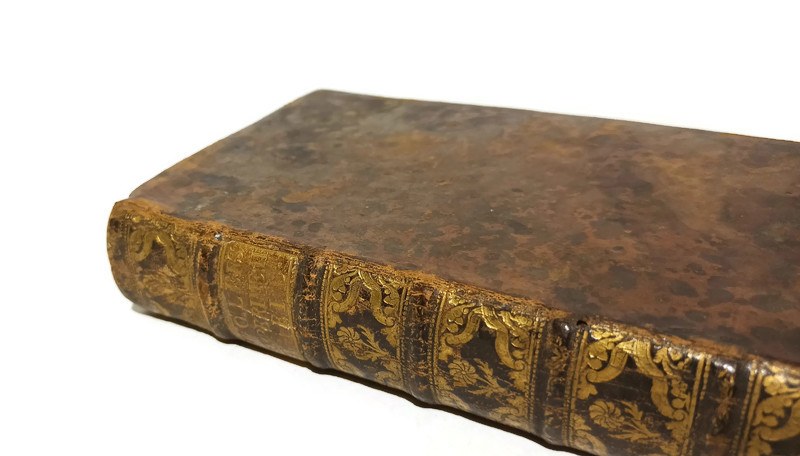 oprawa z epoki, pełna skóra, grzbiet ze złoceniami na każdym polu pomiędzy zwięzami, złoty szyldzik, obrzeża stron barwione na czerwono, pergamin, dwukolorowa strona tytułowa, 14 rozkładanych tablic, s. 568 + indeks, format 18x11cm