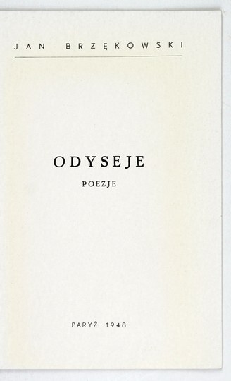 BRZĘKOWSKI Jan - Odyseje. Poezje. Paryż 1948. Imprim. S.P.I. 8, s. [32]. brosz.