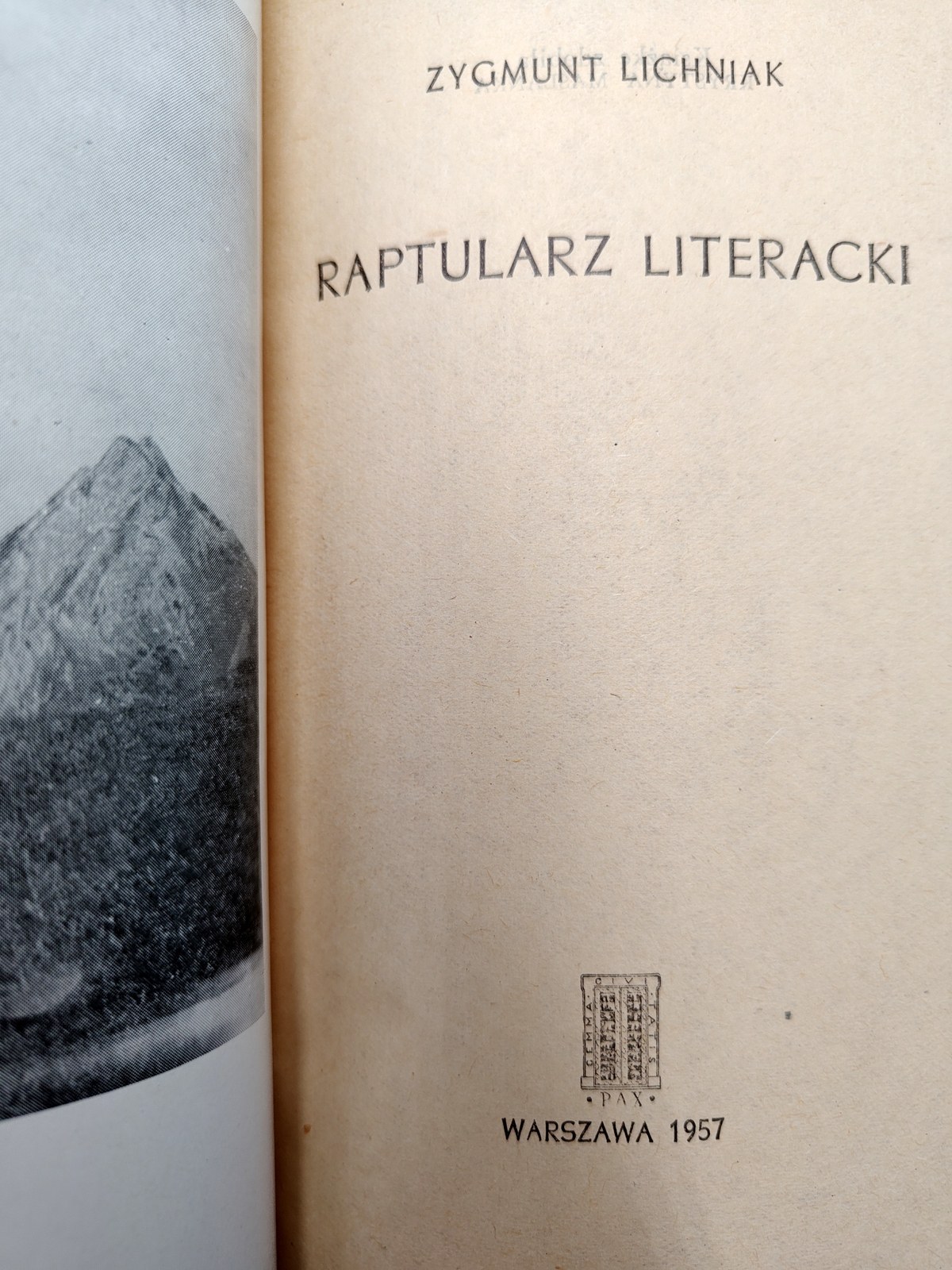 Lichniak Zygmunt - Raptularz Literacki, Warszawa 1957