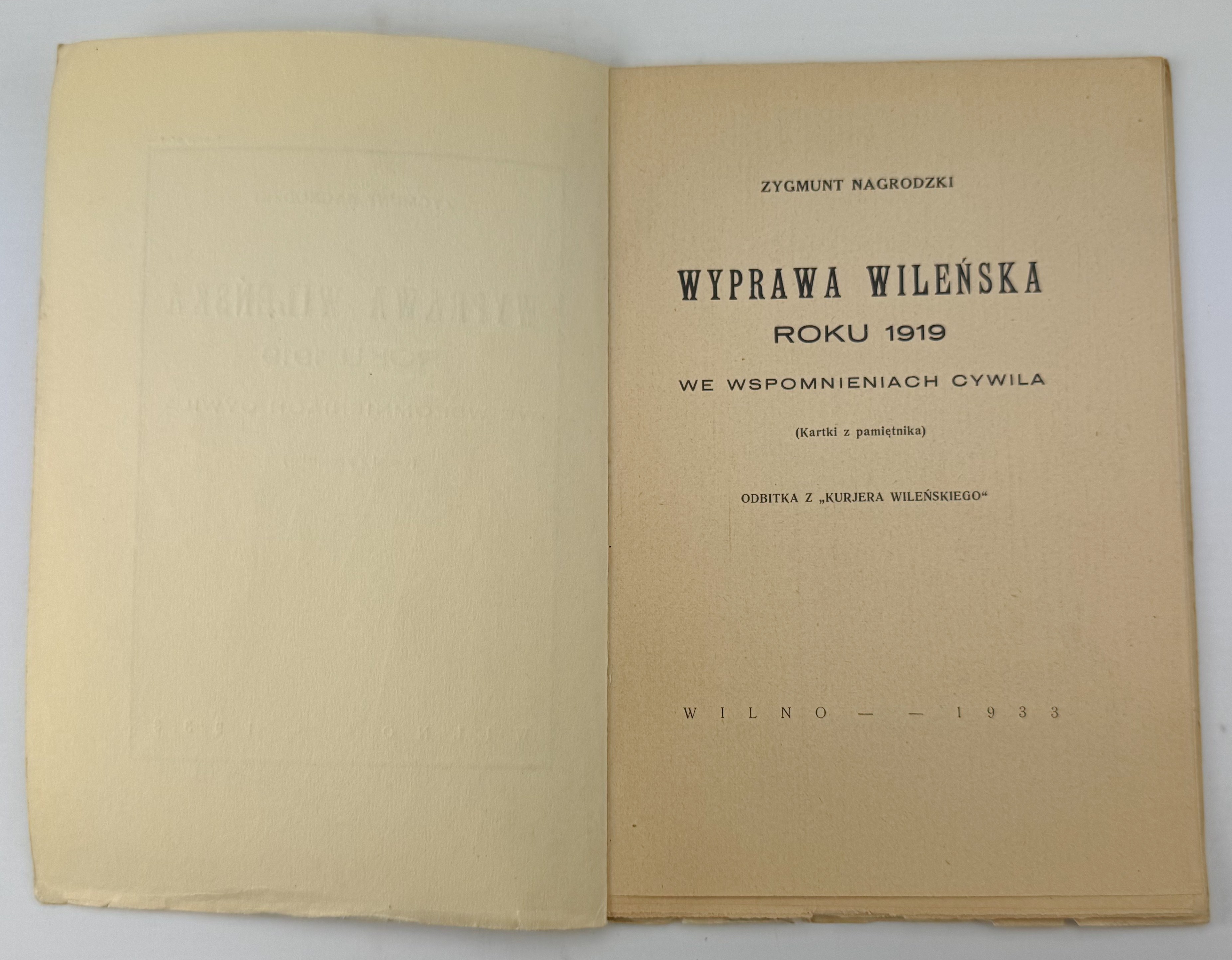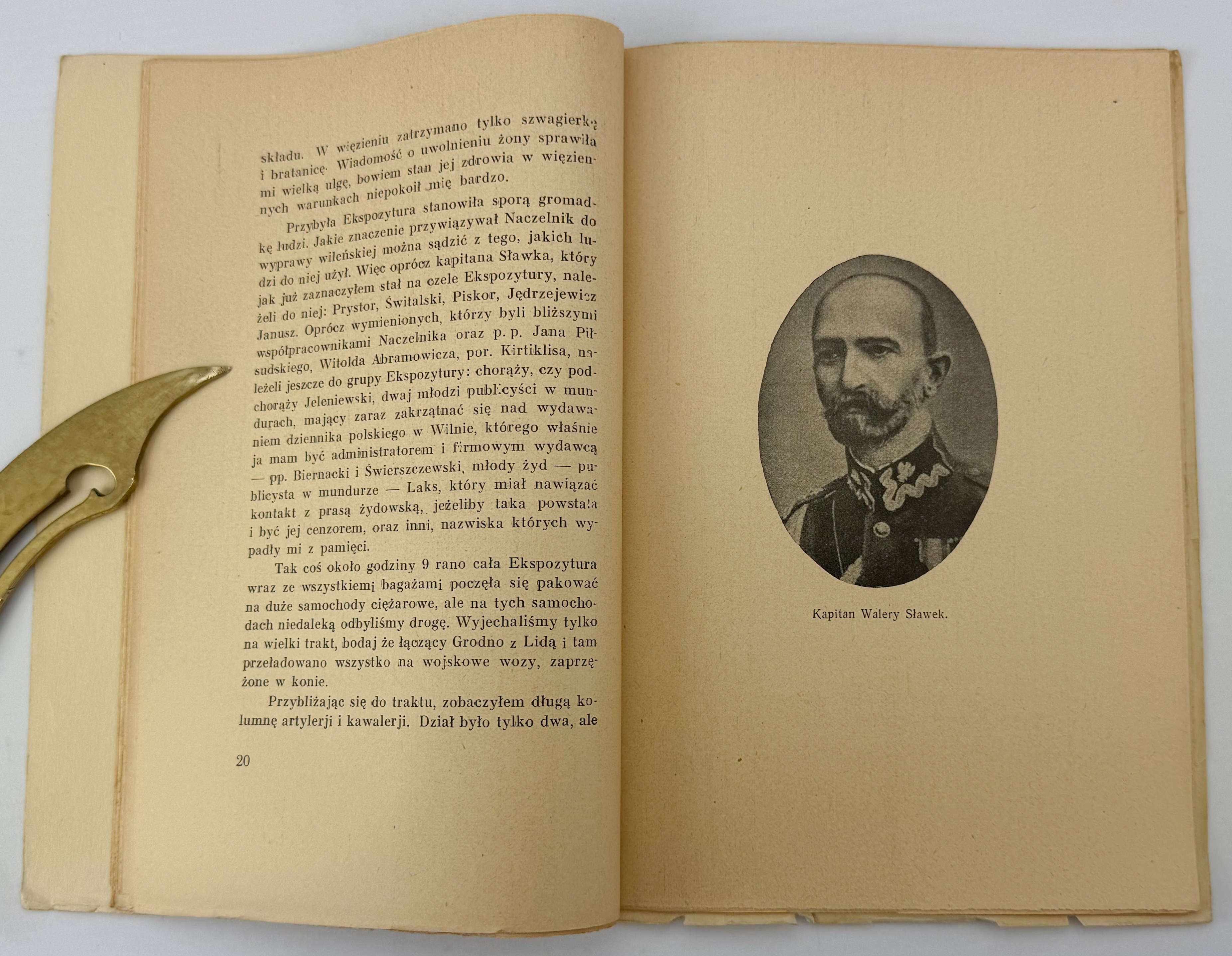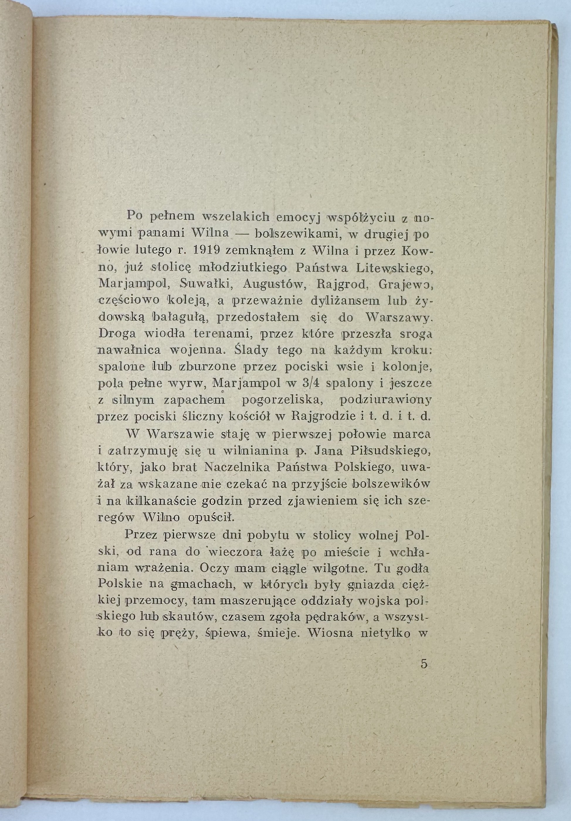 Autor po zajęciu początkiem 1919 roku Wilna przez wojska bolszewickie ucieka do Warszawy. Tam dostaje polecenie od Naczelnika Państwa Józefa Piłsudskiego wzięcia udziału jako cywil w wyprawie wileńskiej w kwietniu 1919 roku.