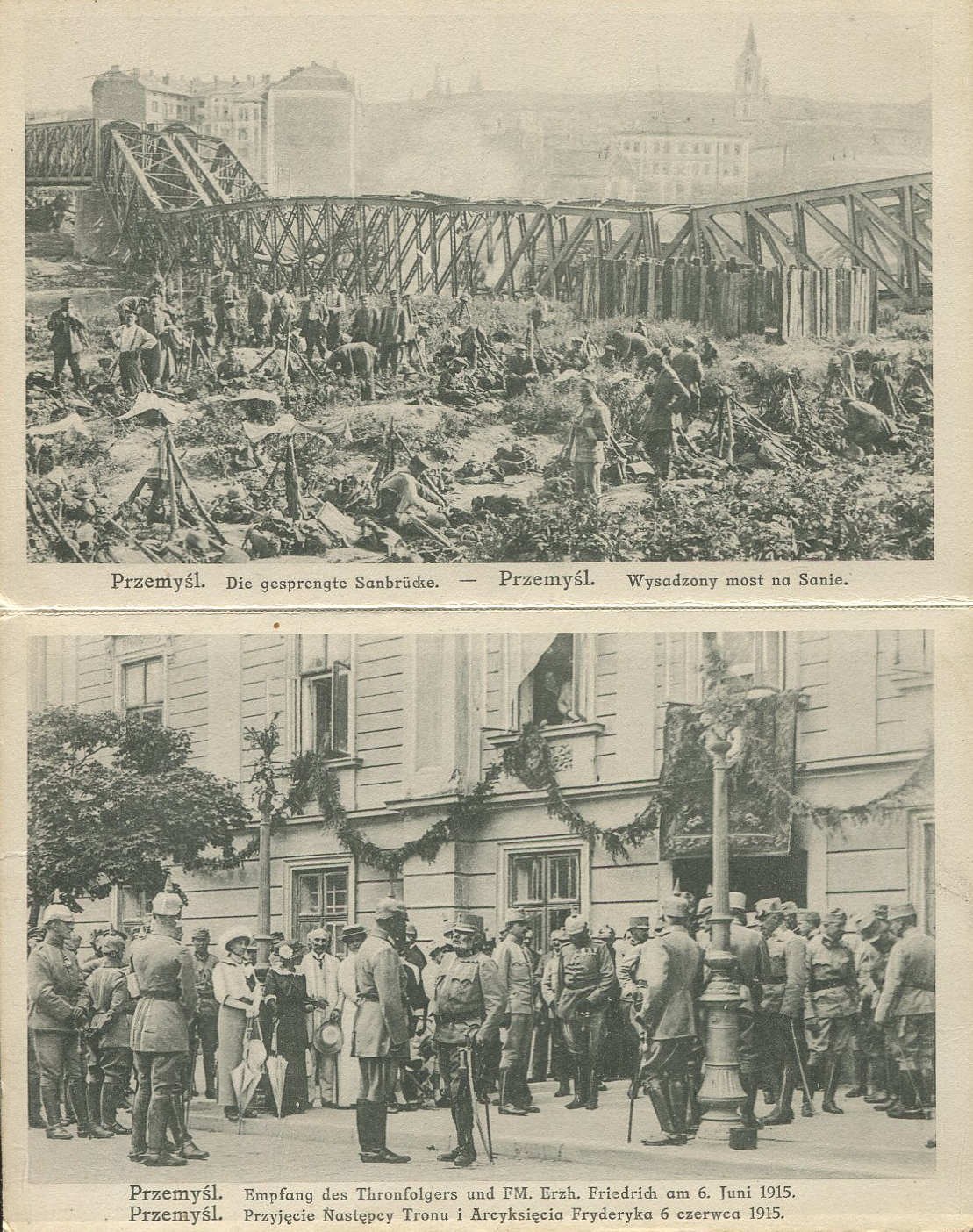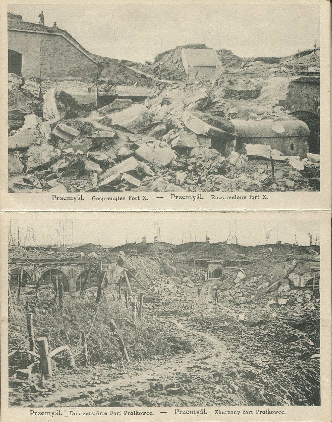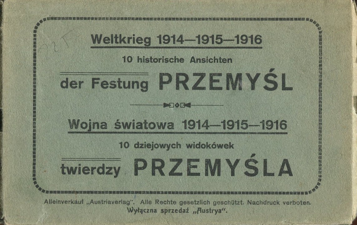 Leporello z 10 pocztówkami przedstawiającymi wojenny Przemyśl w latach 1914-1916. Podpisy w j. niemieckim i polskim.