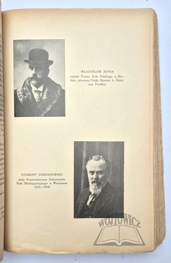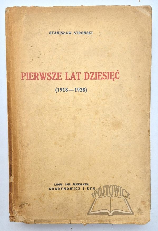 Otarcia, zażółcenia, naddarcia krawędzi i niew. przybrudz. okł., tylna okł. luzem, zagniecenia końcowych kart i tylnej okł., egz. nieprzycięty i częściowo nierozcięty. Zawiera: W oczekiwaniu wojny (1910 - 1913); Pierwsze lat dziesięć (1918 - 1928): 1. U progu niepodległości (1918); 2. Zręby Państwa (1919 - 1925); 3. W krainie ducha (1922 - 1928); 4. Ku nowym zadaniom (1926 - 1928). Przeszłość i przyszłość.