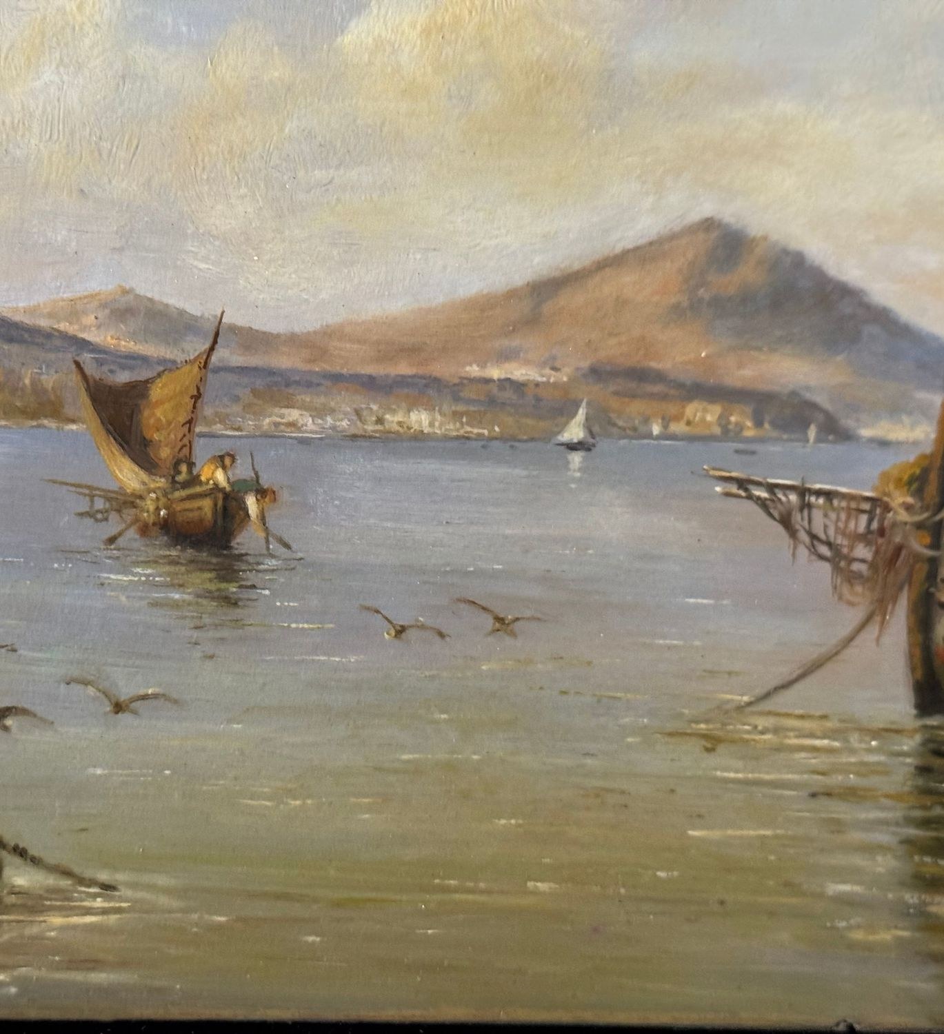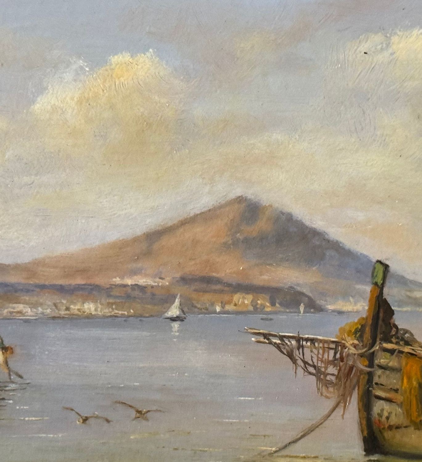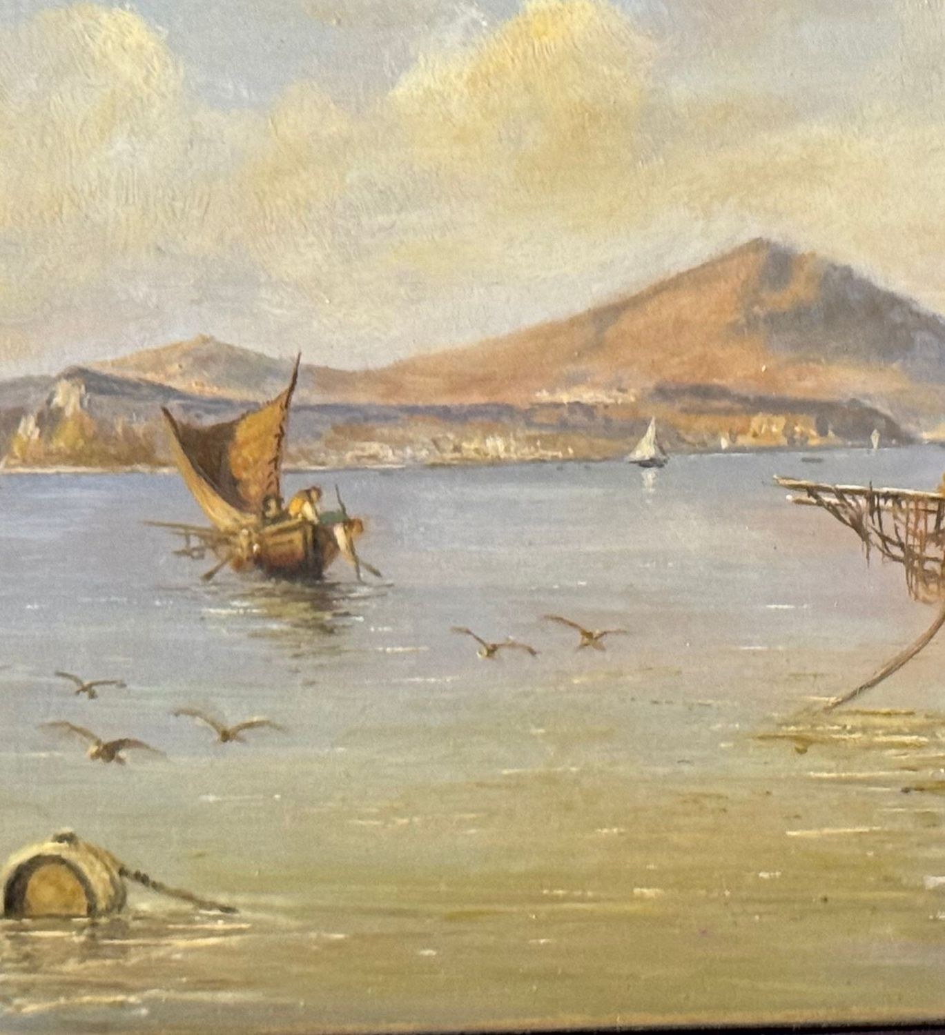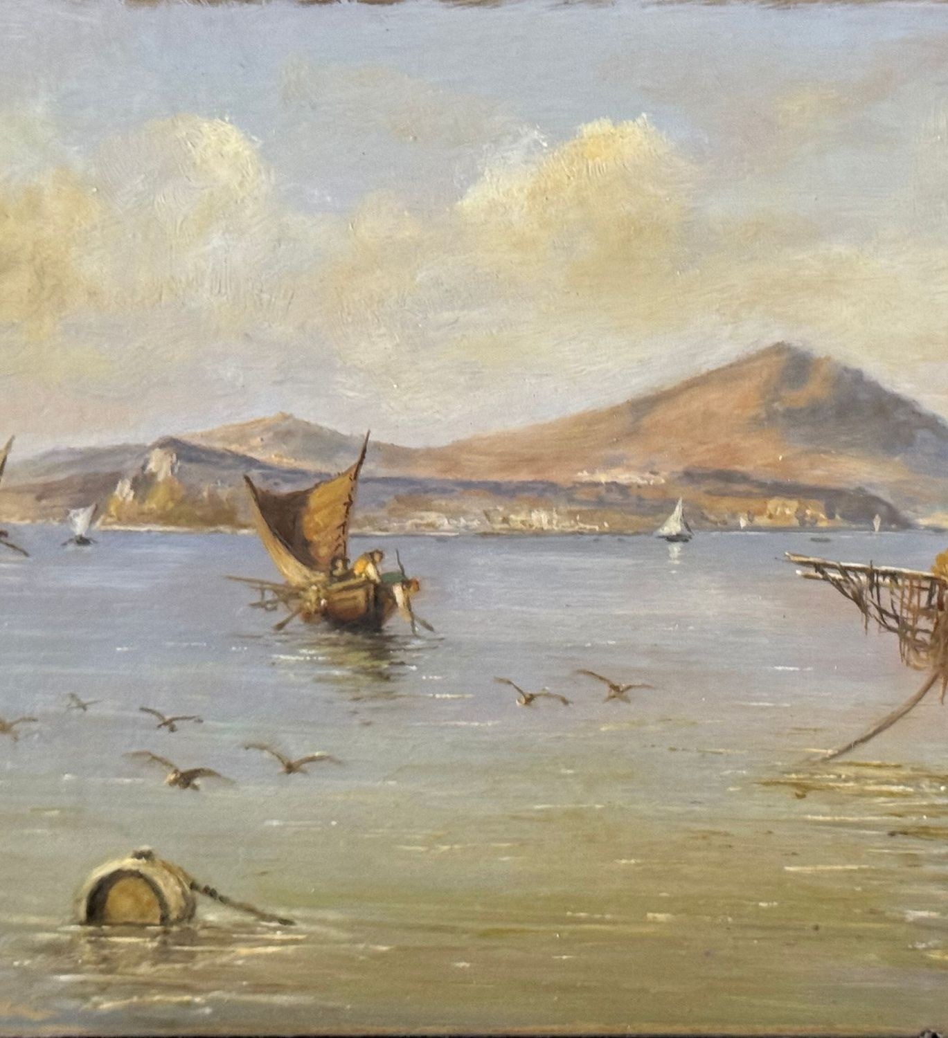 Oil painting on board, 20th century period, Italian school, depicting Boats with Fishermen. Dimensions: 30x17 cm. By an anonymous artist. The work is in good condition.