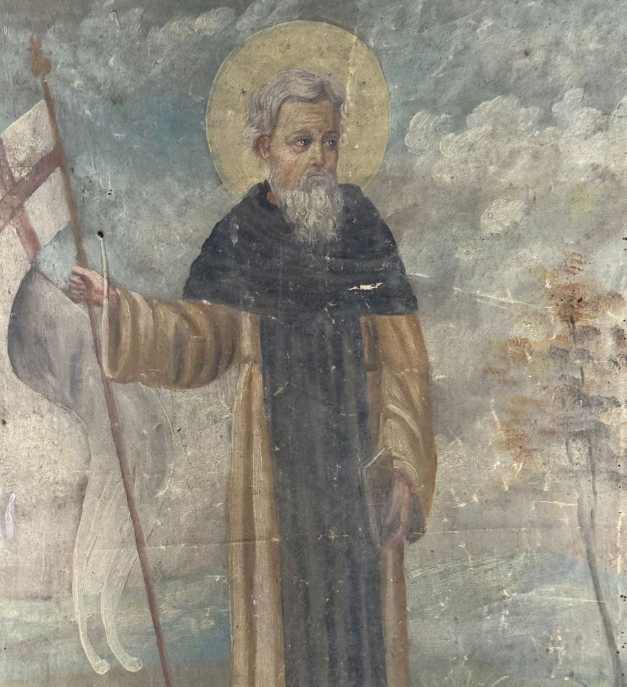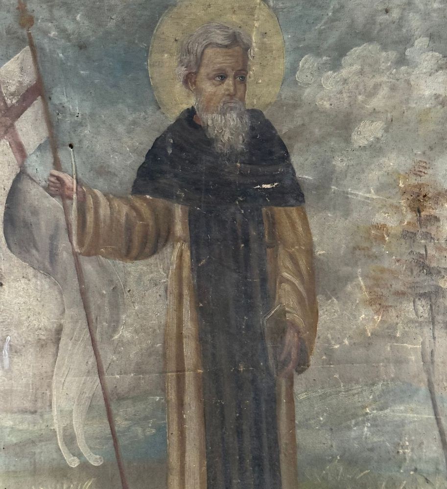 Oil painting on canvas, 19th century, European school, depicting an ecclesiastical figure. Dimensions including frame: 60x82 cm. Dimensions inside frame: 47x68 cm. Anonymous artist. Work in fair condition as shown in the attached photos.