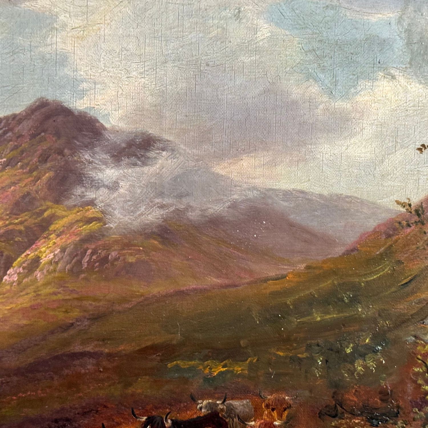Oil painting on canvas, 19th century, Neapolitan school, depicting a landscape with a flock of sheep.