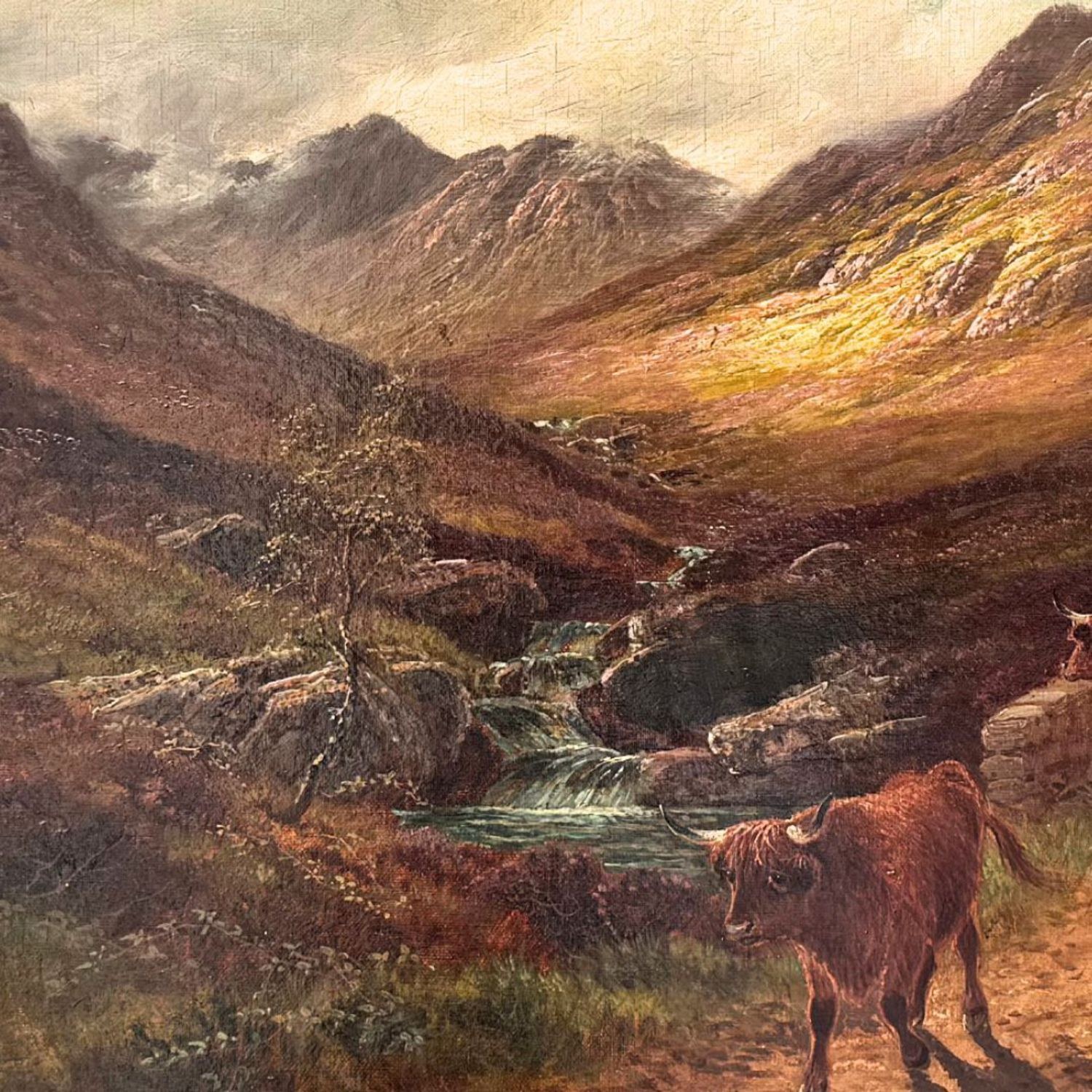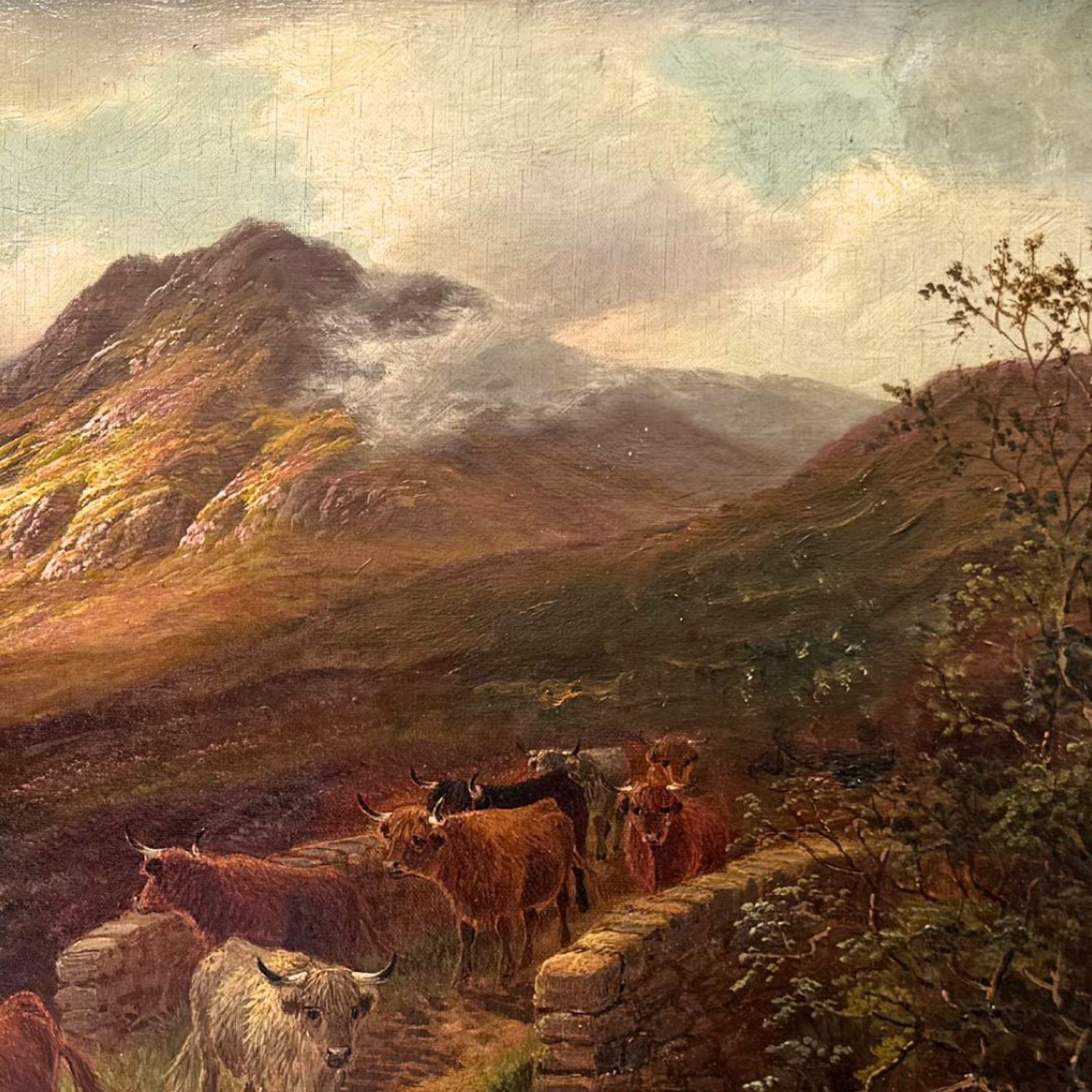 Oil painting on canvas, 19th century, Neapolitan school, depicting a landscape with a flock of sheep.