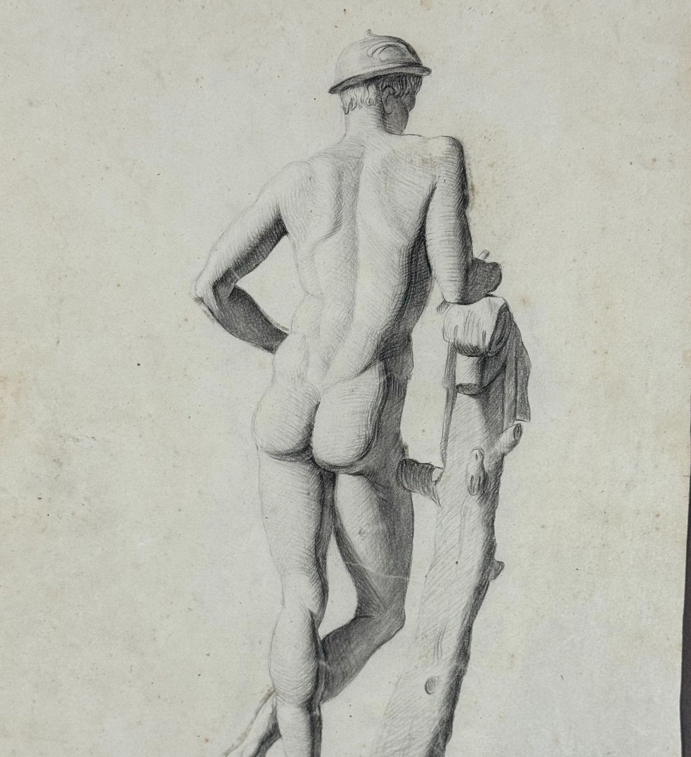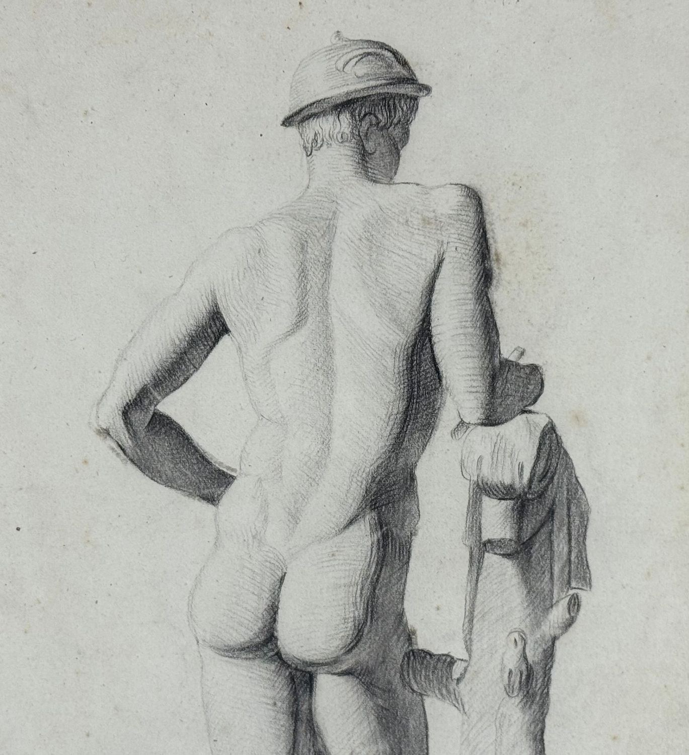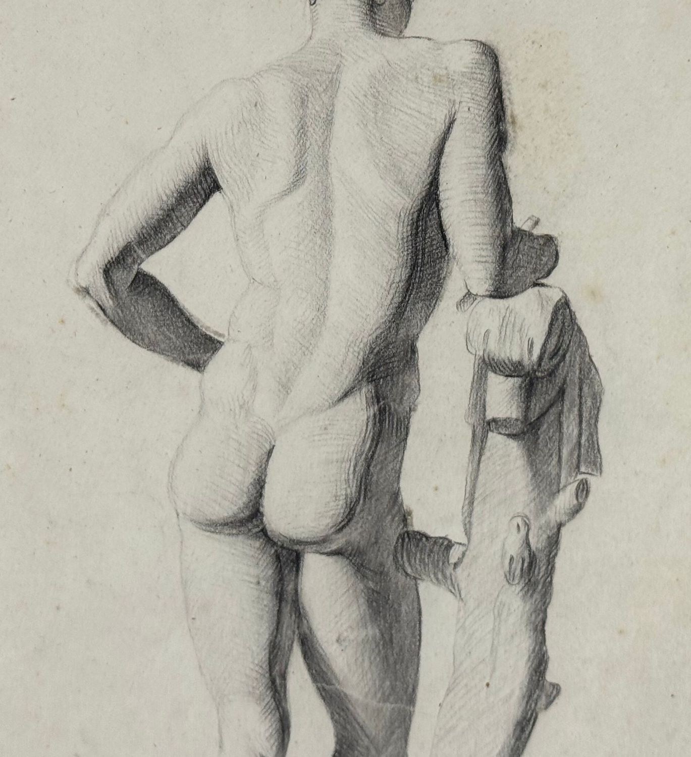 Drawing on paper from the 20th century, Italian school, depicting male anatomy. Dimensions: 26x37 cm. Anonymous artist. The work is in good condition, with minor signs of age.