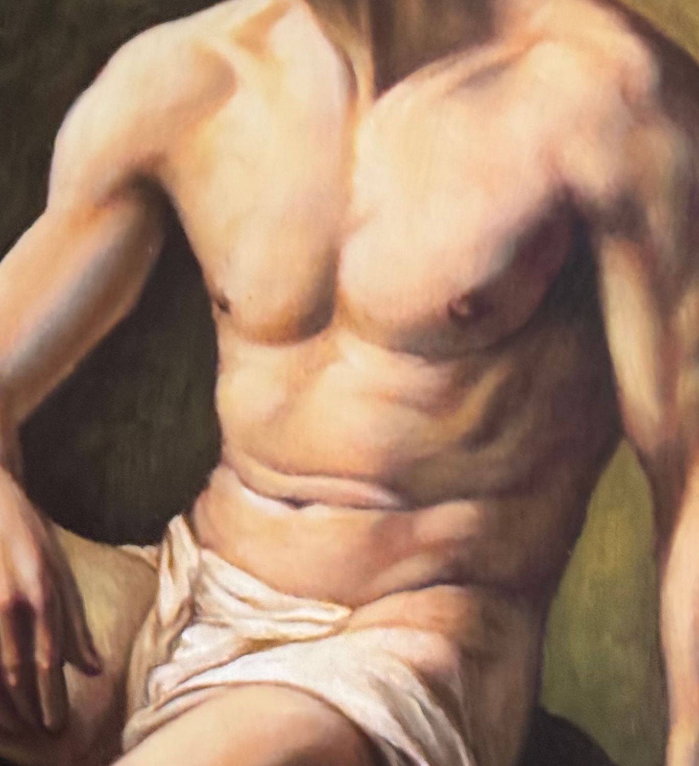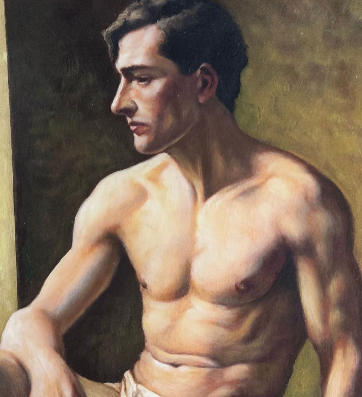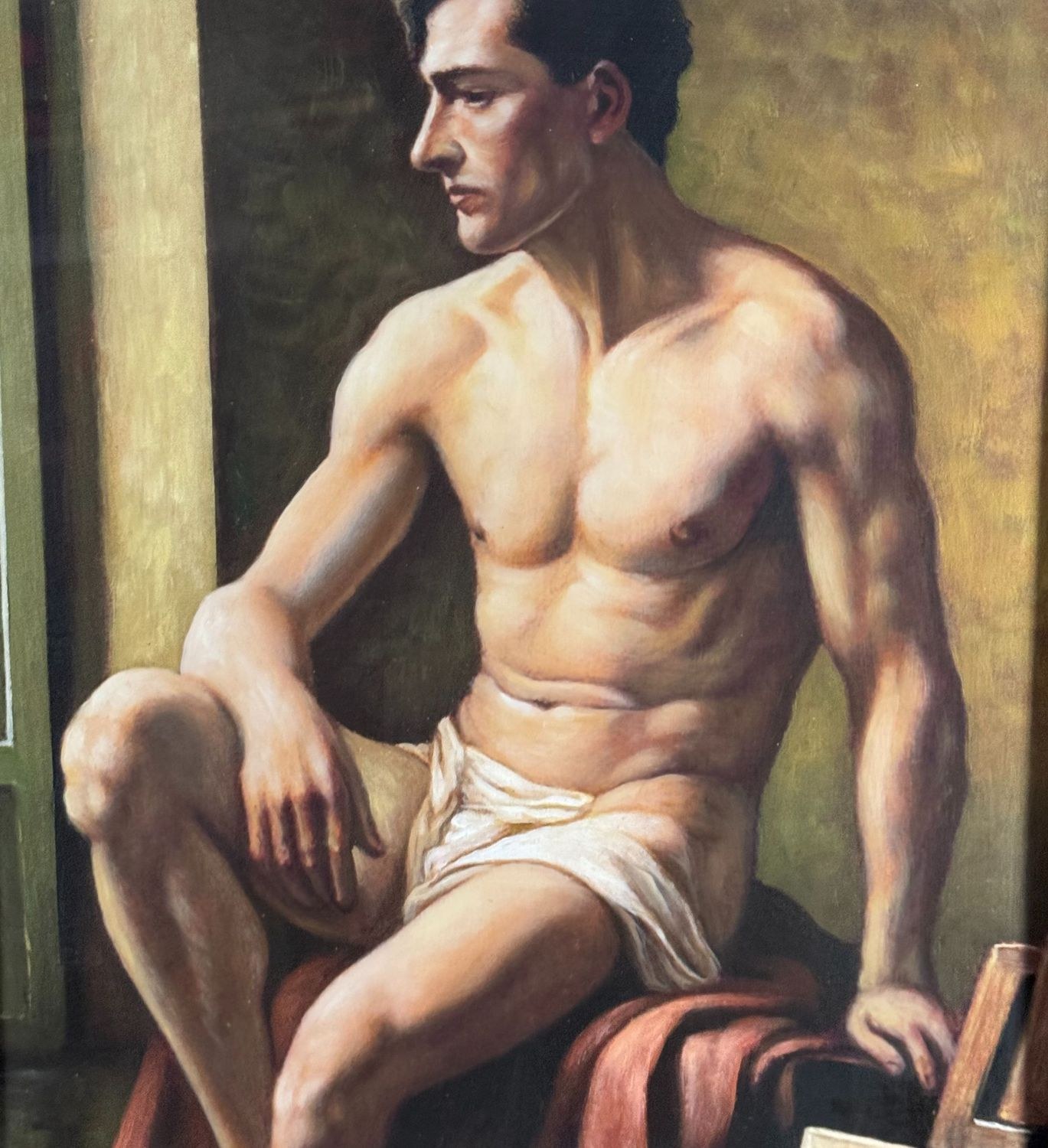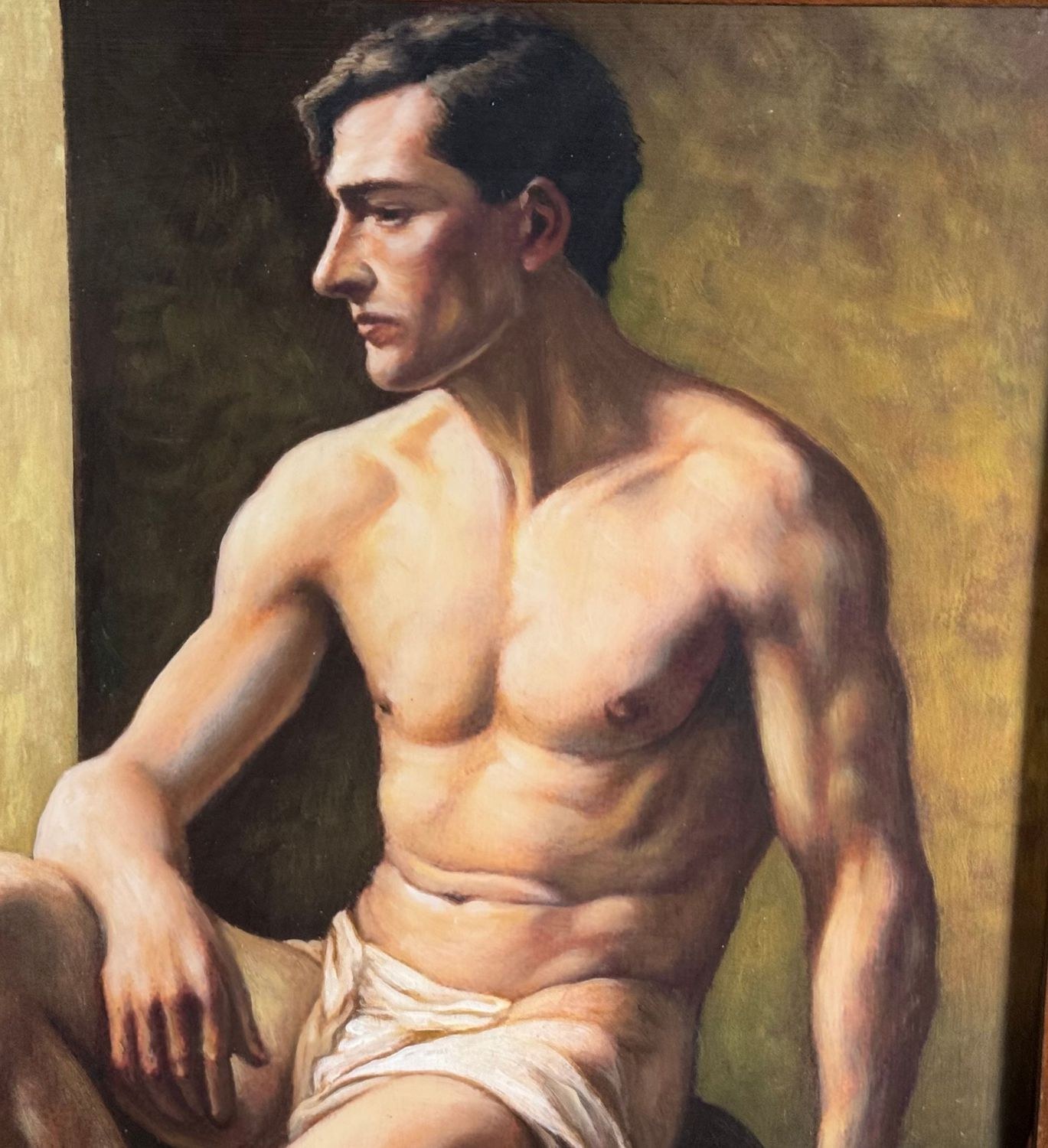 Oil painting on panel, 20th century period, Italian school, depicting Male Nude. Dimensions including frame: 50 x 62 cm. Dimensions inside the frame: 38 x 50 cm. Anonymous artist. Artwork in good condition.