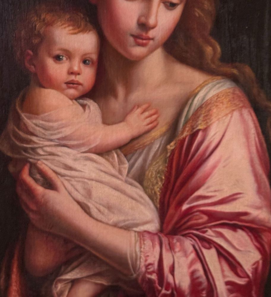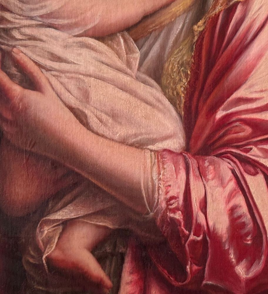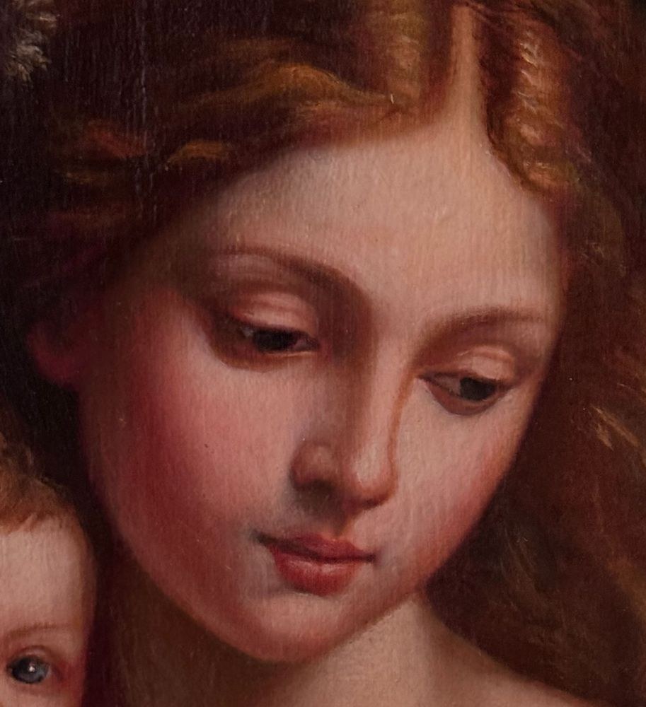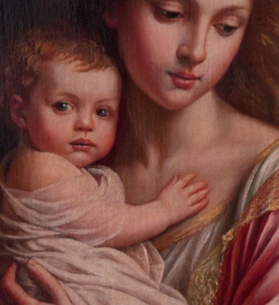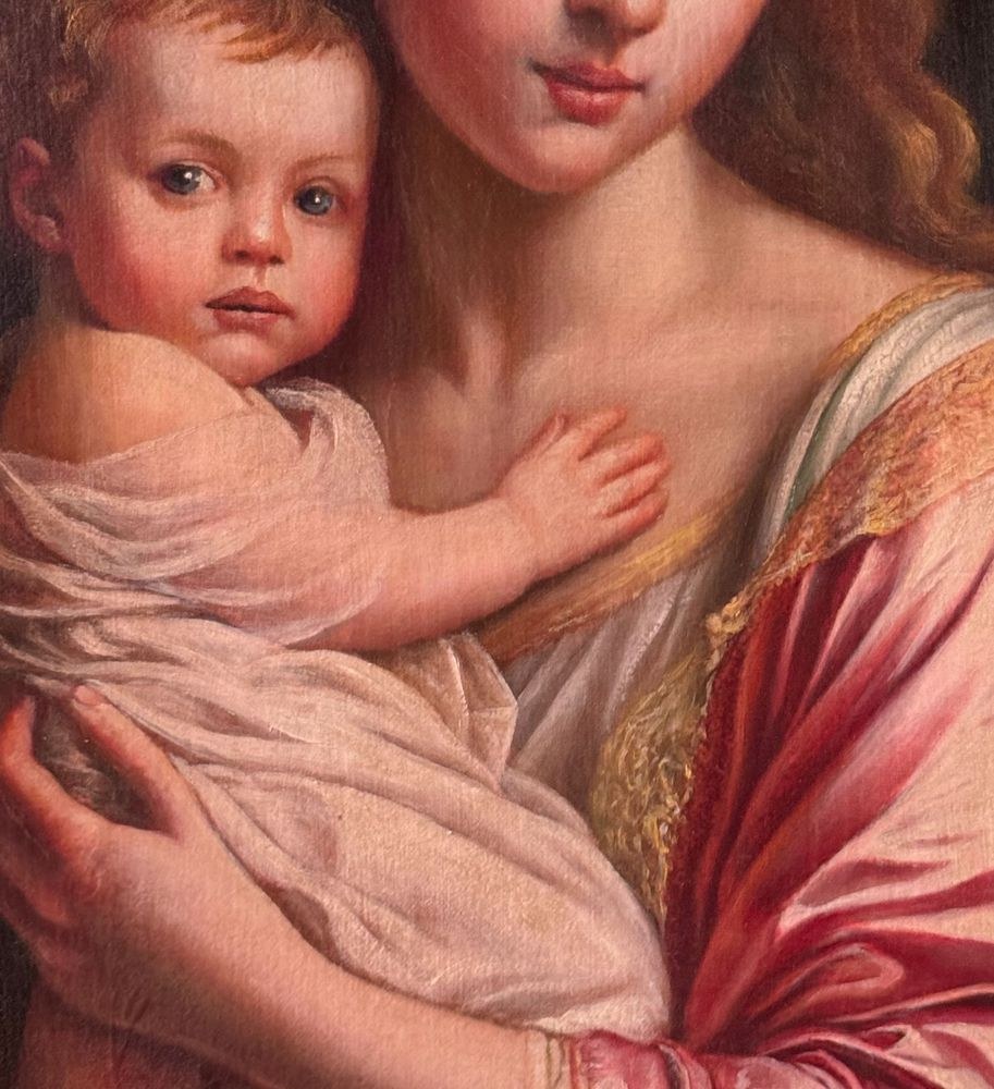 Oil on canvas painting, early 20th century, Italian school, depicting a maternal scene. Dimensions: 36x52 cm. By an anonymous artist. Artwork in excellent condition.