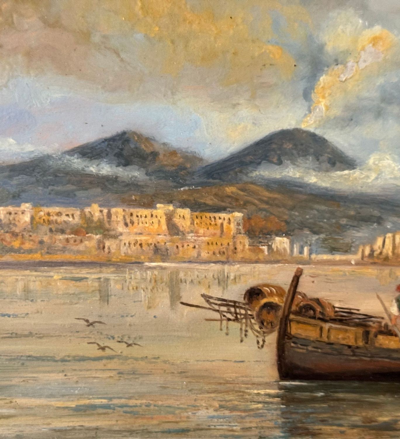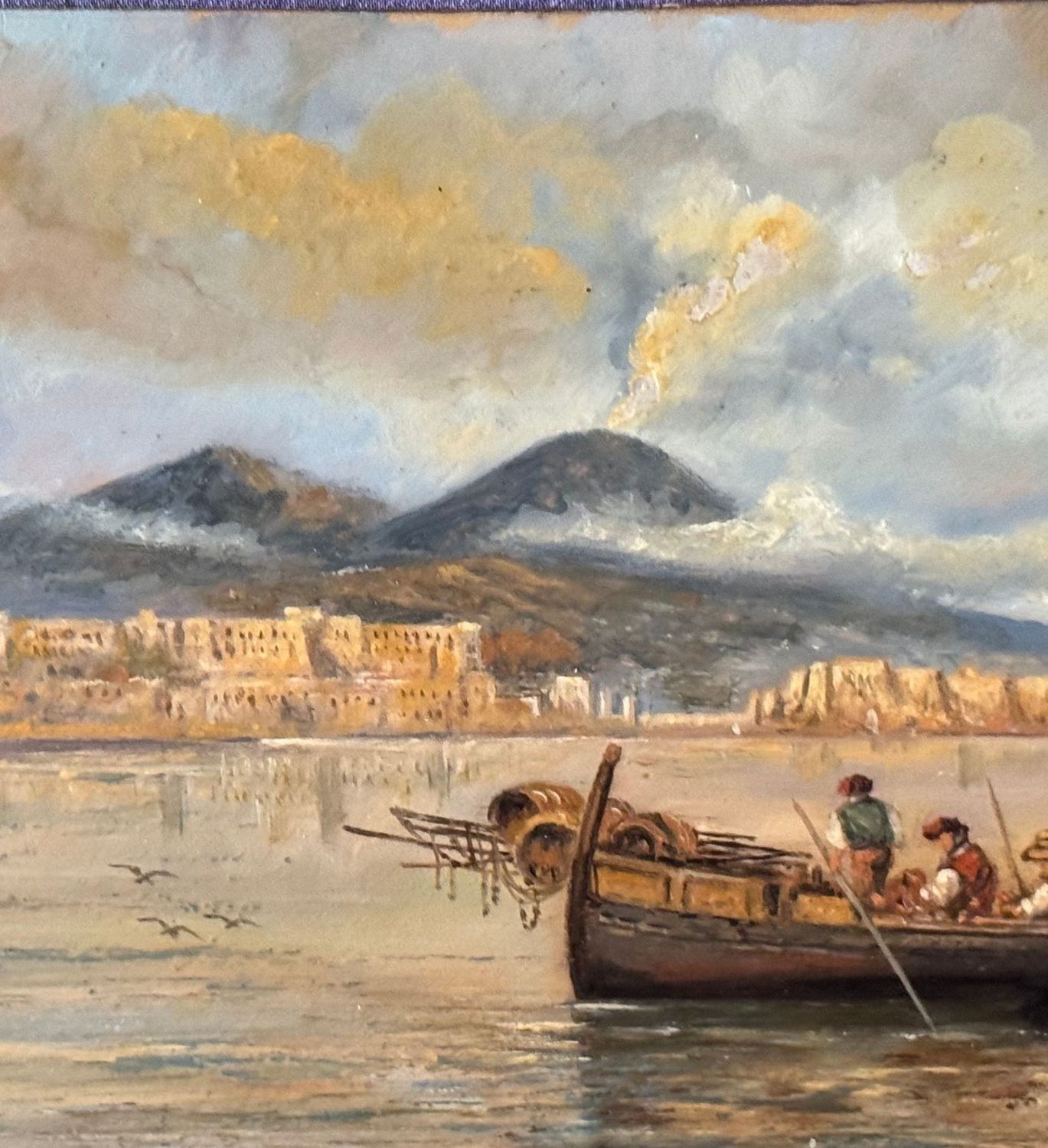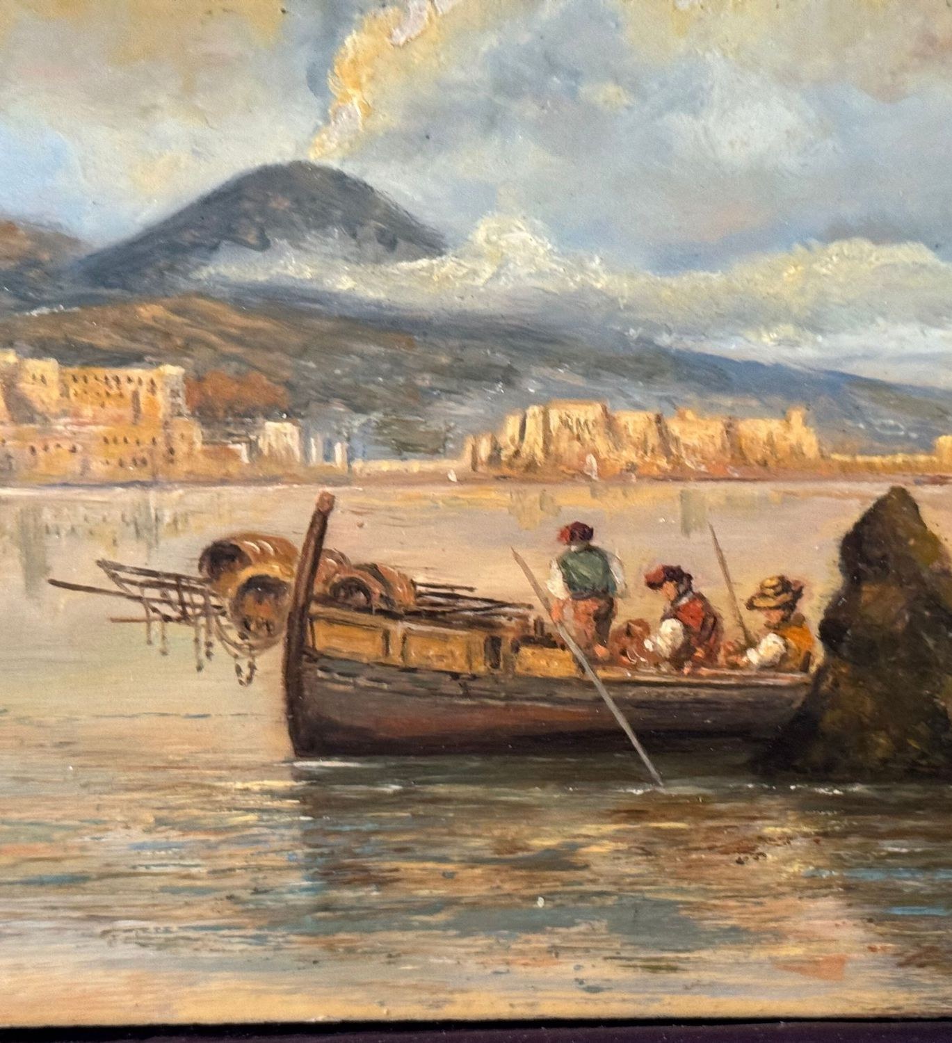 Oil painting on board, 20th century period, Italian school, depicting a Neapolitan Seascape with Boats and Fishermen. Dimensions: 30x17 cm. By an anonymous artist. The work is in good condition.