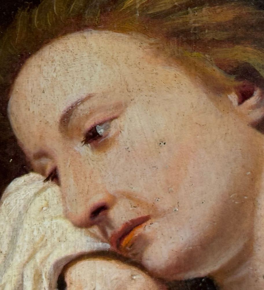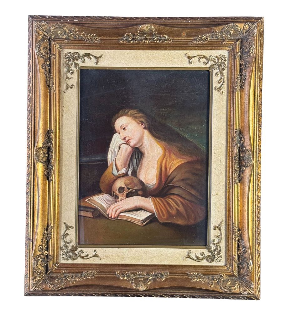 Oil painting on panel, 20th century, Italian school, depicting the Penitent Magdalene. Dimensions including frame: 52x63 cm. Dimensions inside the frame: 30x40 cm. By an anonymous artist. Artwork in good condition.