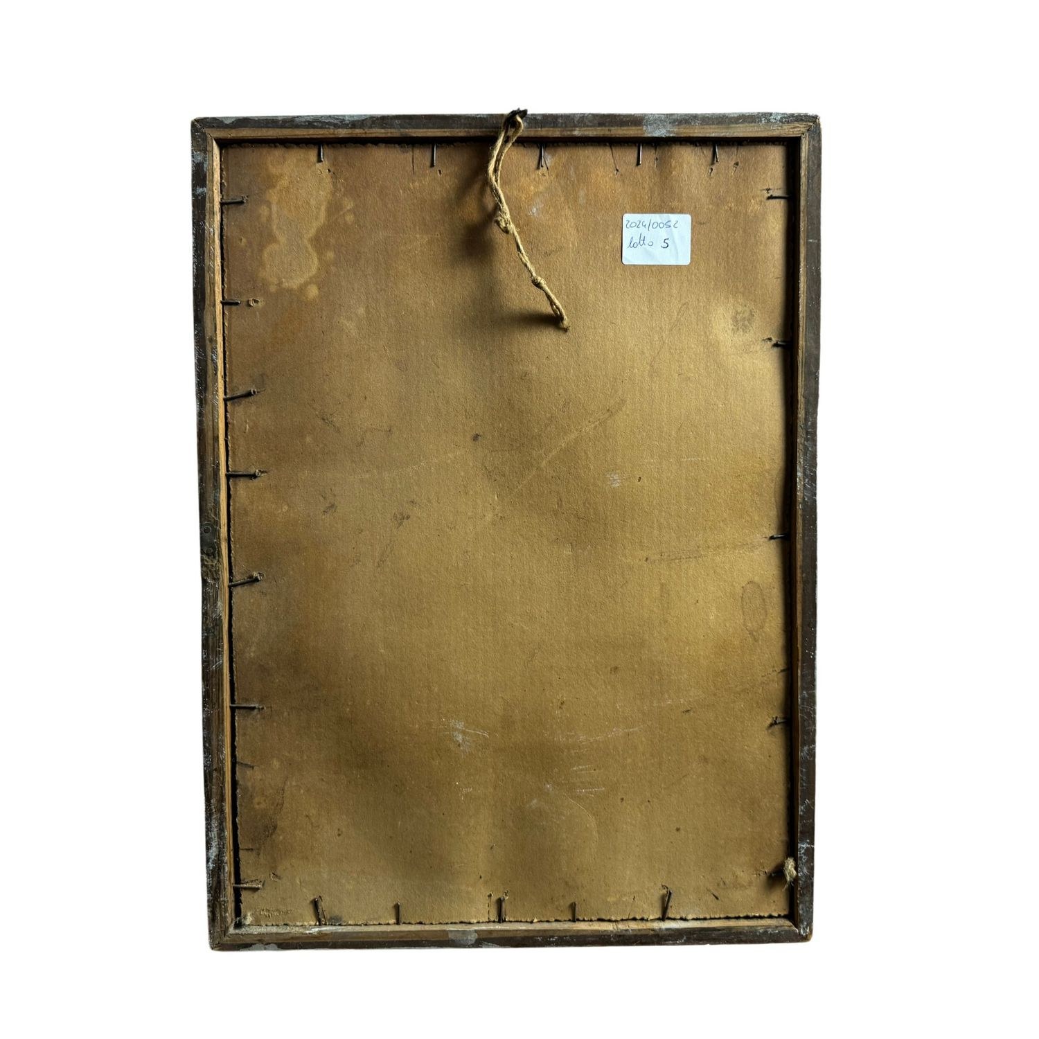 Oil painting on paper, from the 20th century Italian school, depicting a portrait of a girl with a doll.