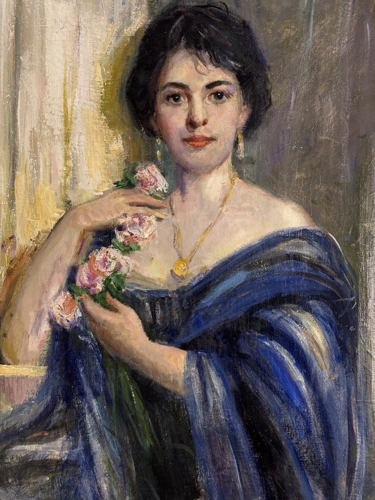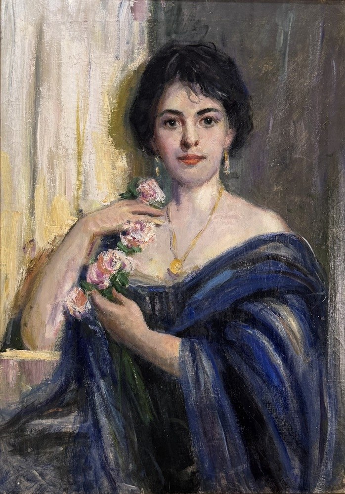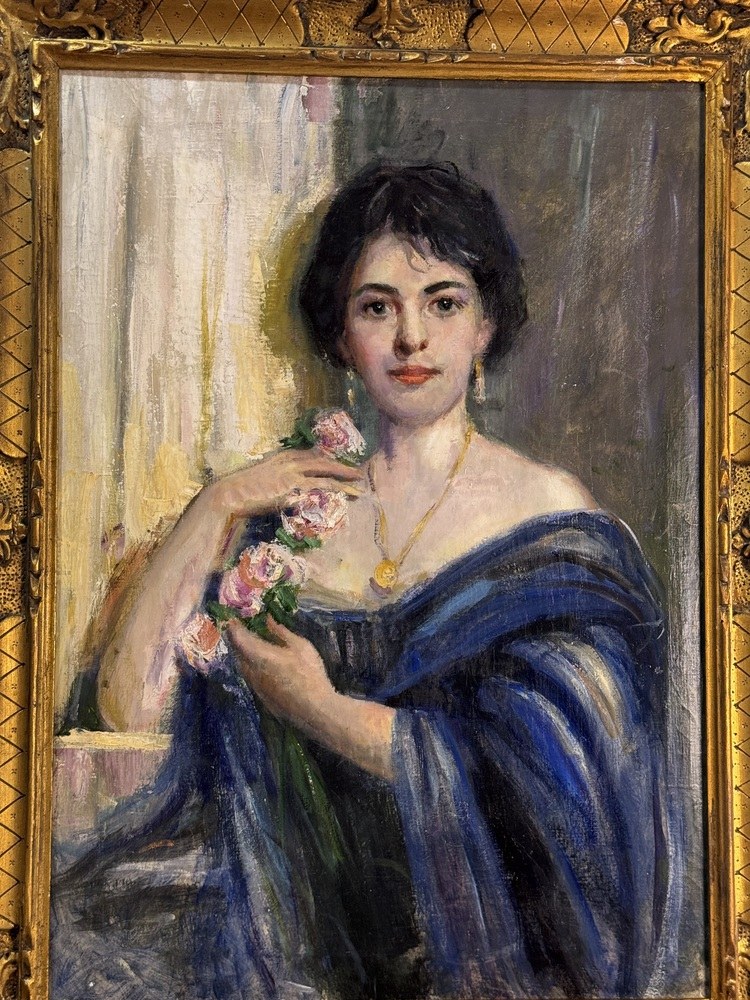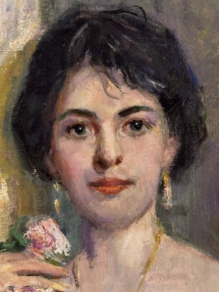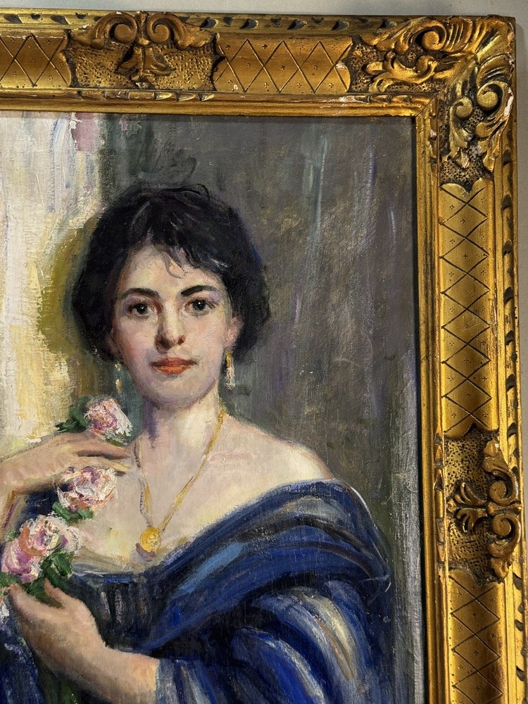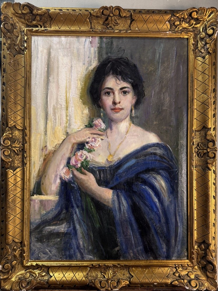 Oil painting on canvas, 20th century period, Italian school depicting Portrait of a Woman. Dimensions including frame: 87x67 cm. Internal frame dimensions: 50x70 cm. By an anonymous artist. Artwork in good condition. Frame with slight signs of wear as shown in the attached photos.