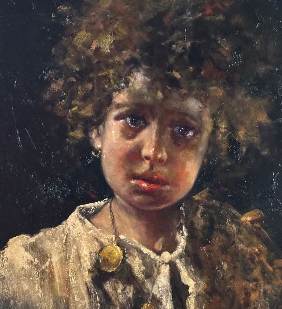 Oil painting on panel, 20th century, Italian school, depicting a portrait of a young girl. Dimensions including frame: 50x60 cm. Dimensions inside the frame: 40x50 cm. By an anonymous artist. Artwork in good condition.