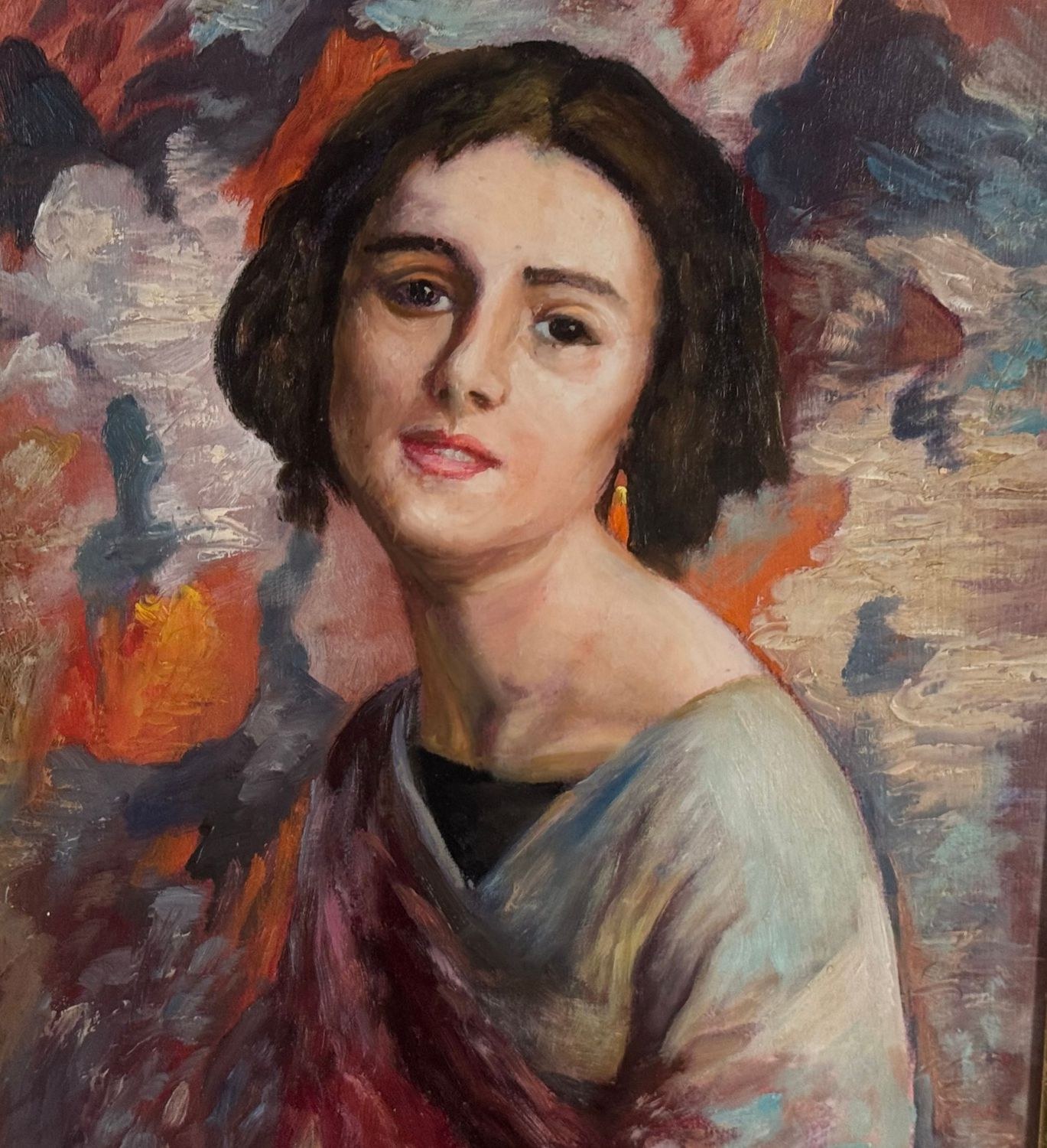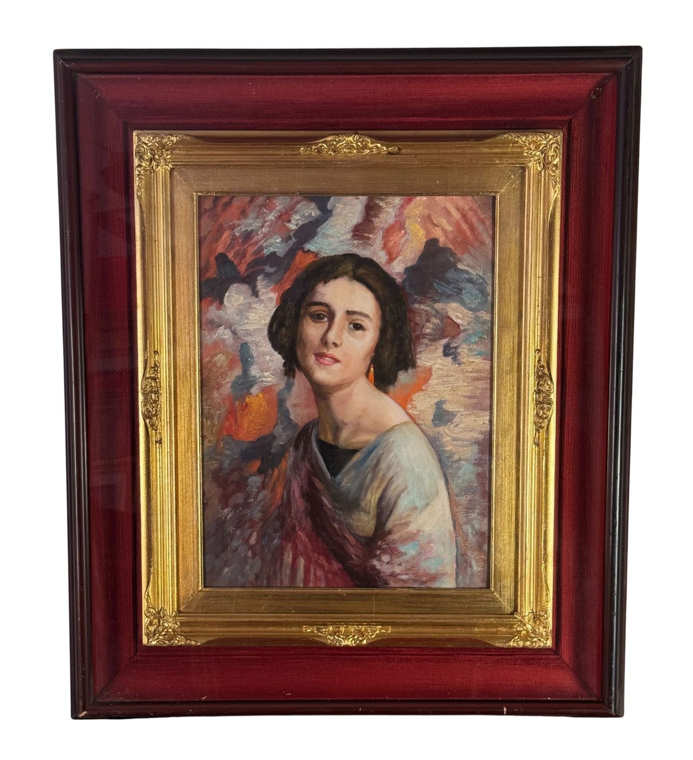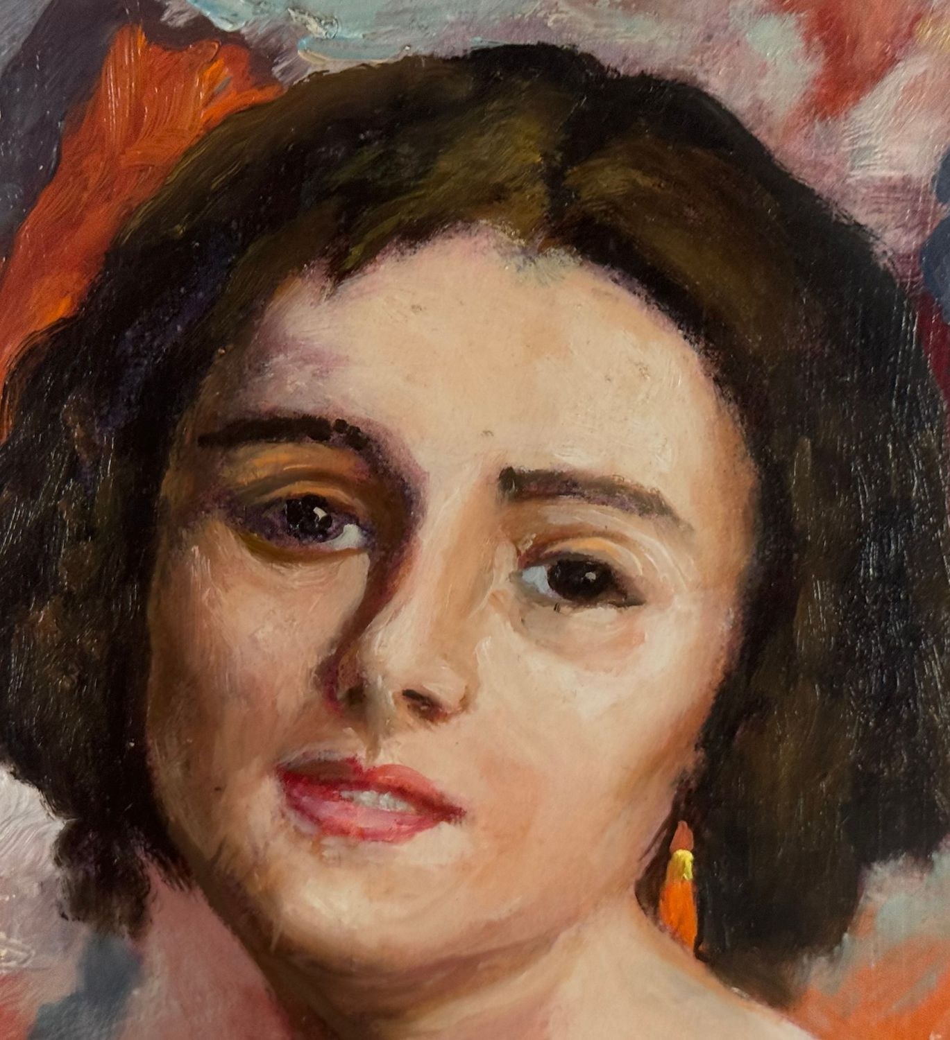 Oil painting on panel, 20th-century period, Italian school, depicting a portrait of a young woman. Dimensions including the frame: 56 × 66 cm. Dimensions inside the frame: 30 × 40 cm. By an anonymous artist. Artwork in good condition.