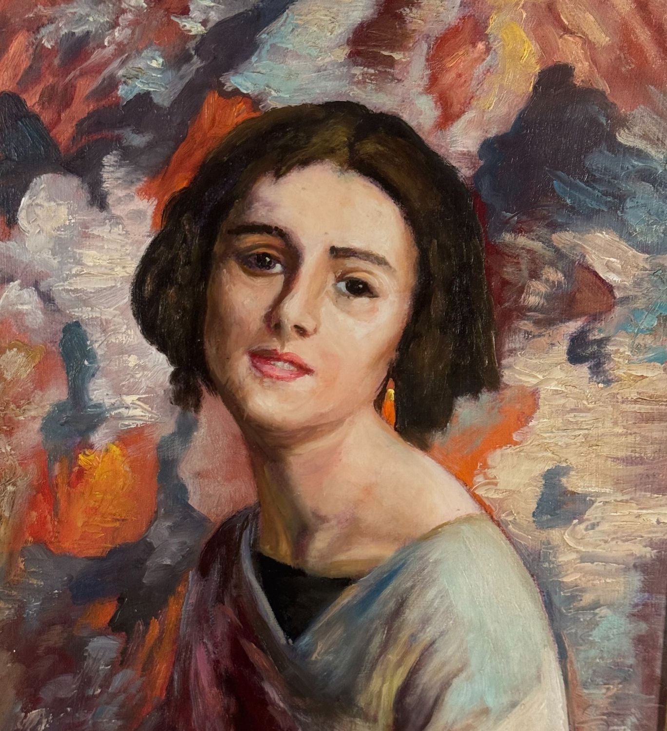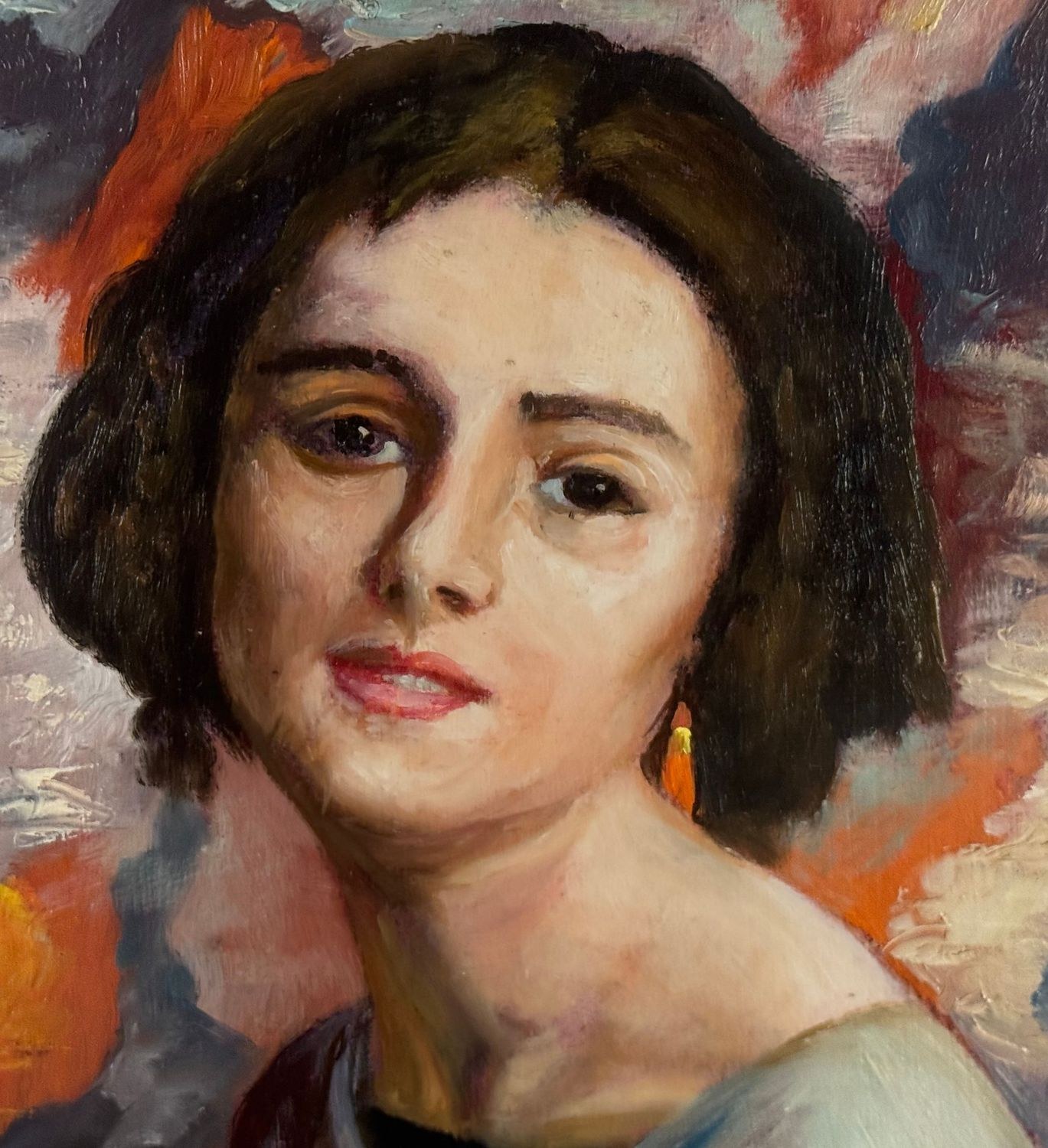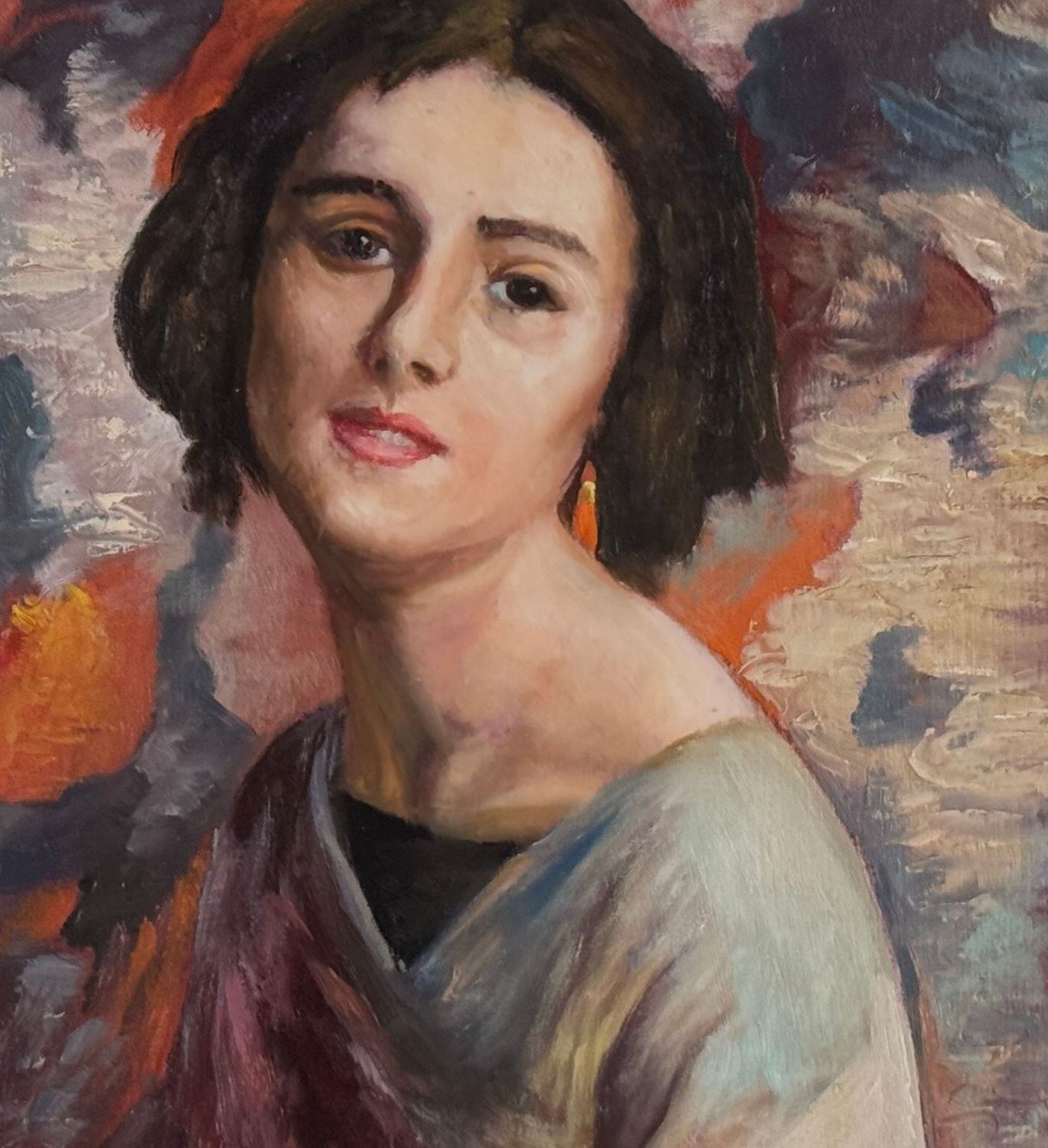 Oil painting on panel, 20th-century period, Italian school, depicting a portrait of a young woman. Dimensions including the frame: 56 × 66 cm. Dimensions inside the frame: 30 × 40 cm. By an anonymous artist. Artwork in good condition.