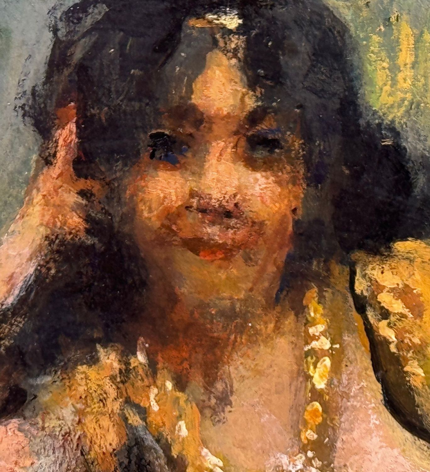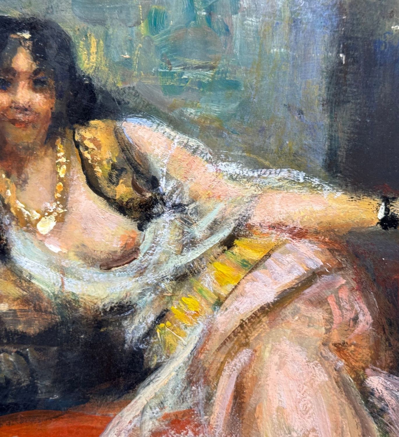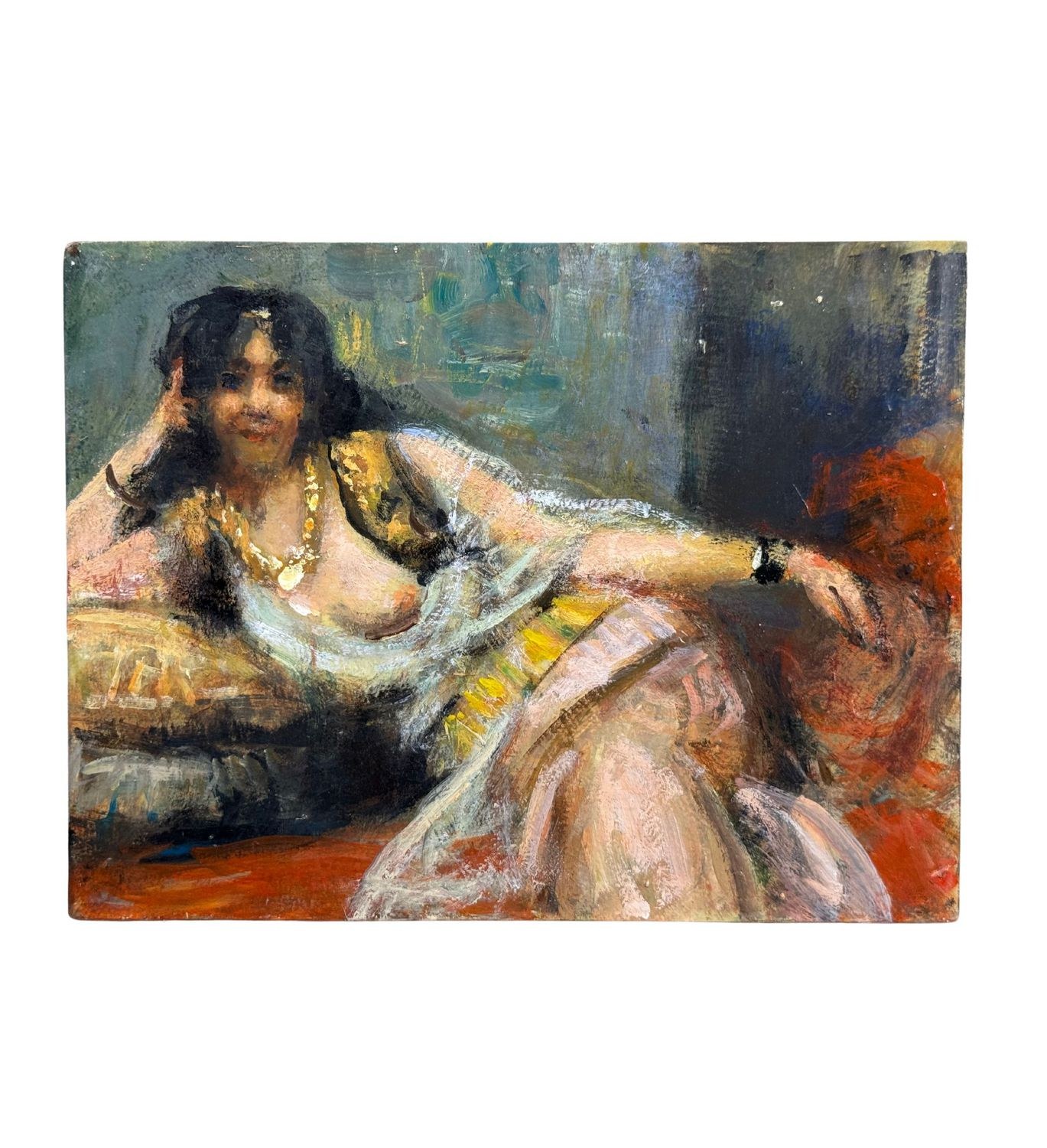 Oil painting on panel, dating from the early 20th century, Italian school, depicting a Portrait of an Eastern woman. Dimensions: 20x15 cm. By an anonymous artist. The work is in good condition.