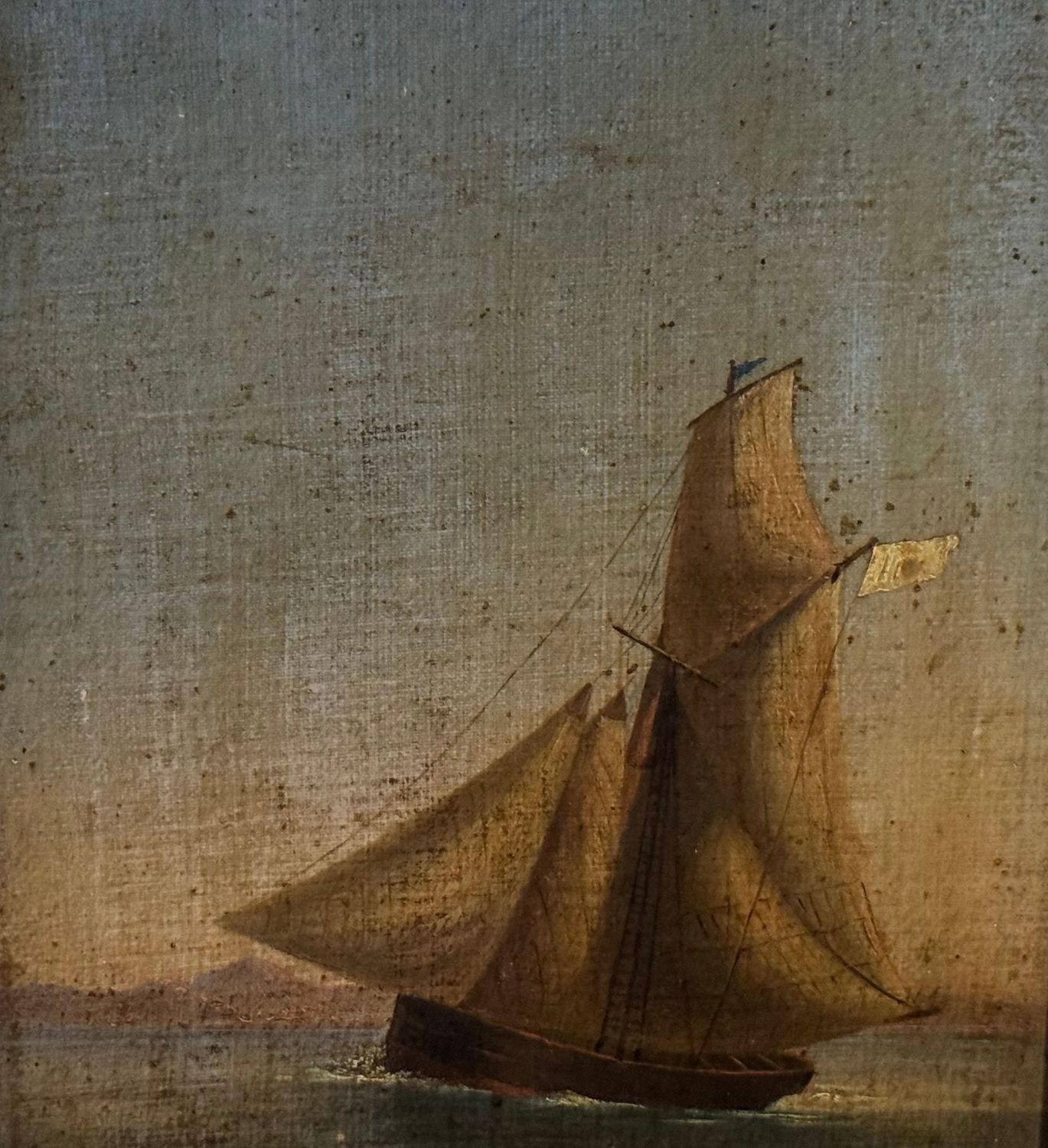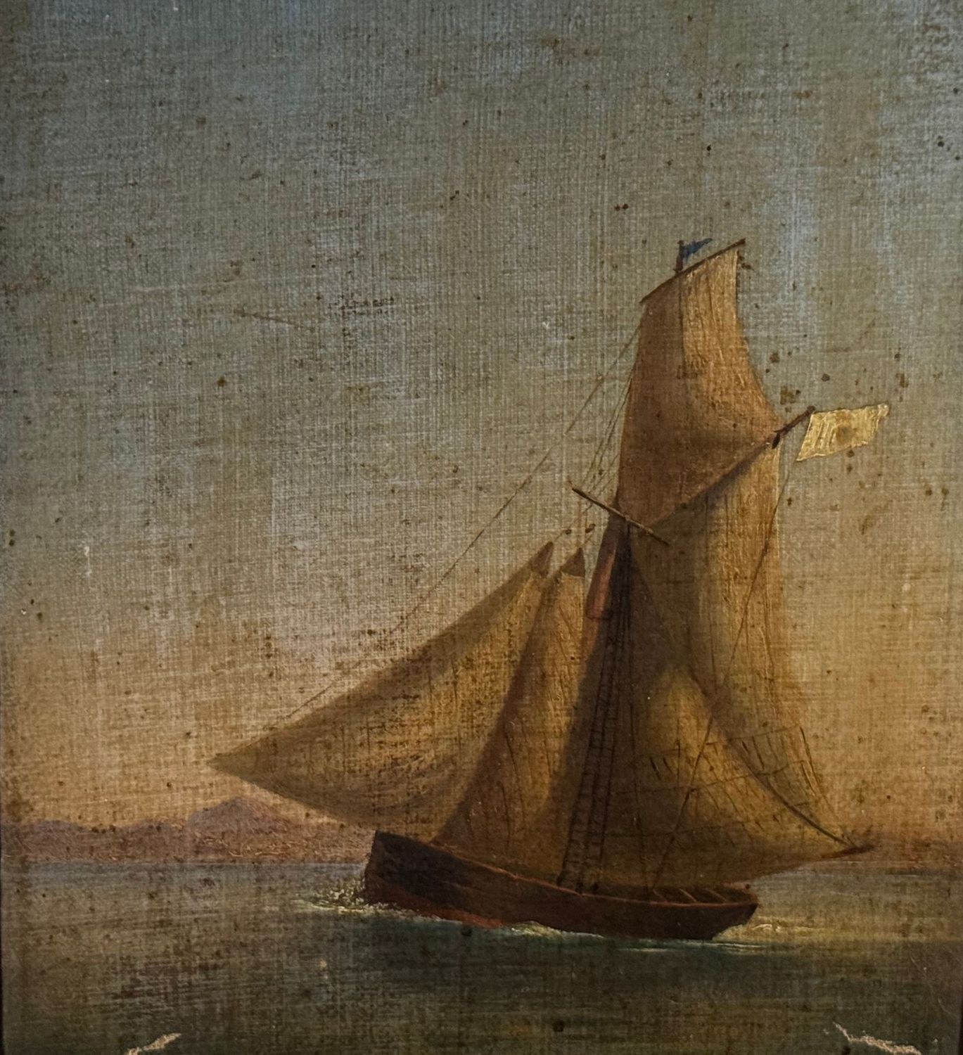 Oil painting on canvas, 19th/20th-century period, Italian school, depicting Sailing Ship. Dimensions: 21 × 31 cm. Anonymous artist. Artwork in good condition with slight signs of age, as shown in the attached photos.