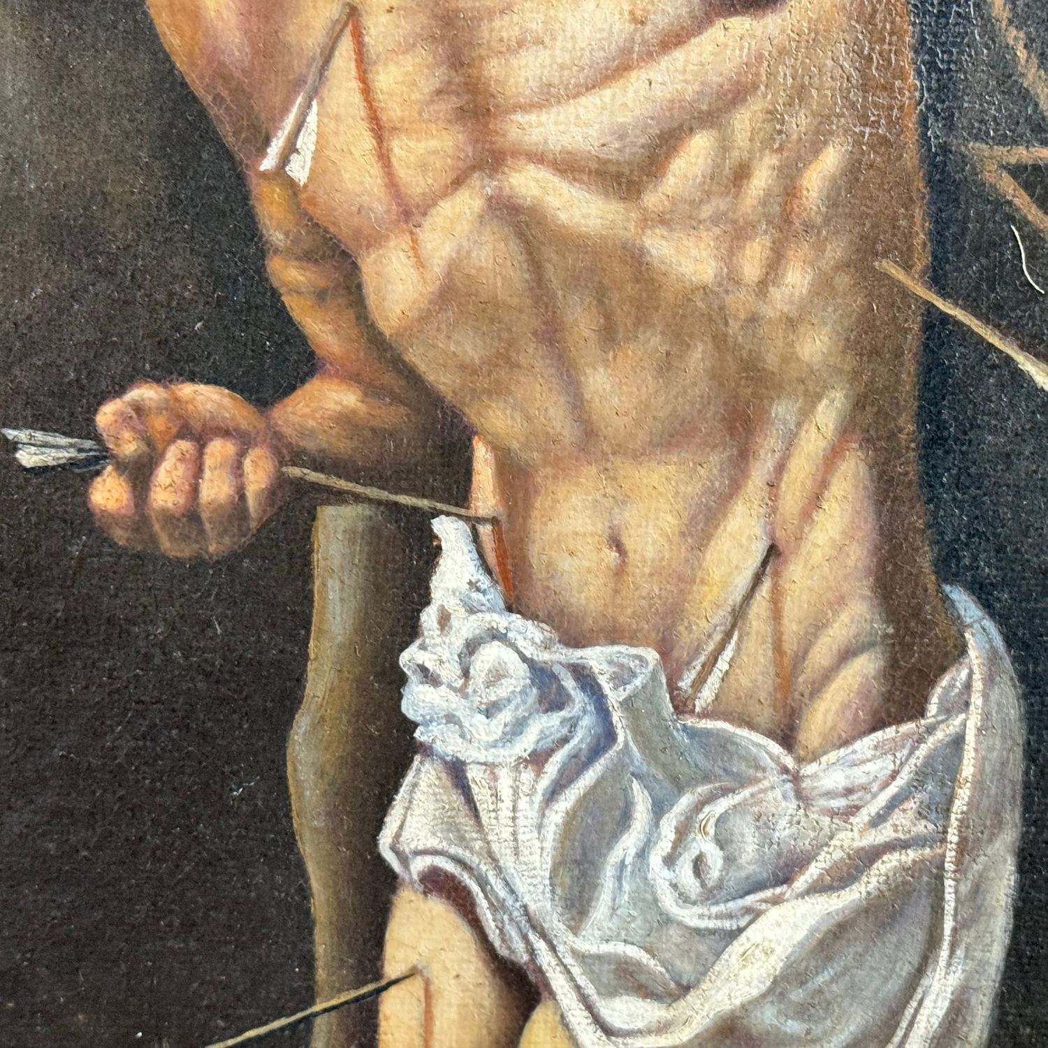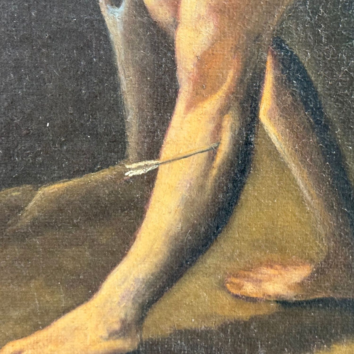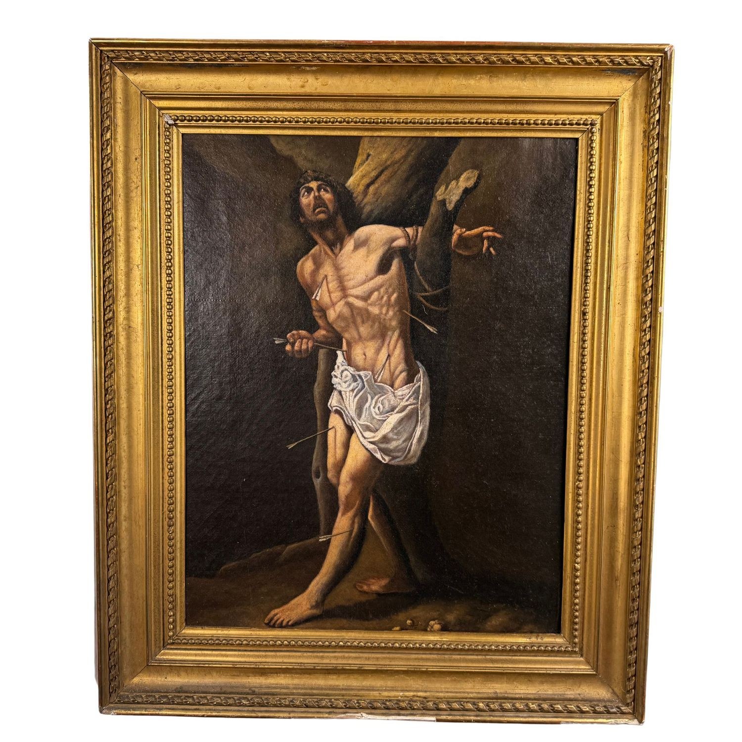 Oil painting on canvas, 19th-century period, Italian school, depicting Saint Sebastian.