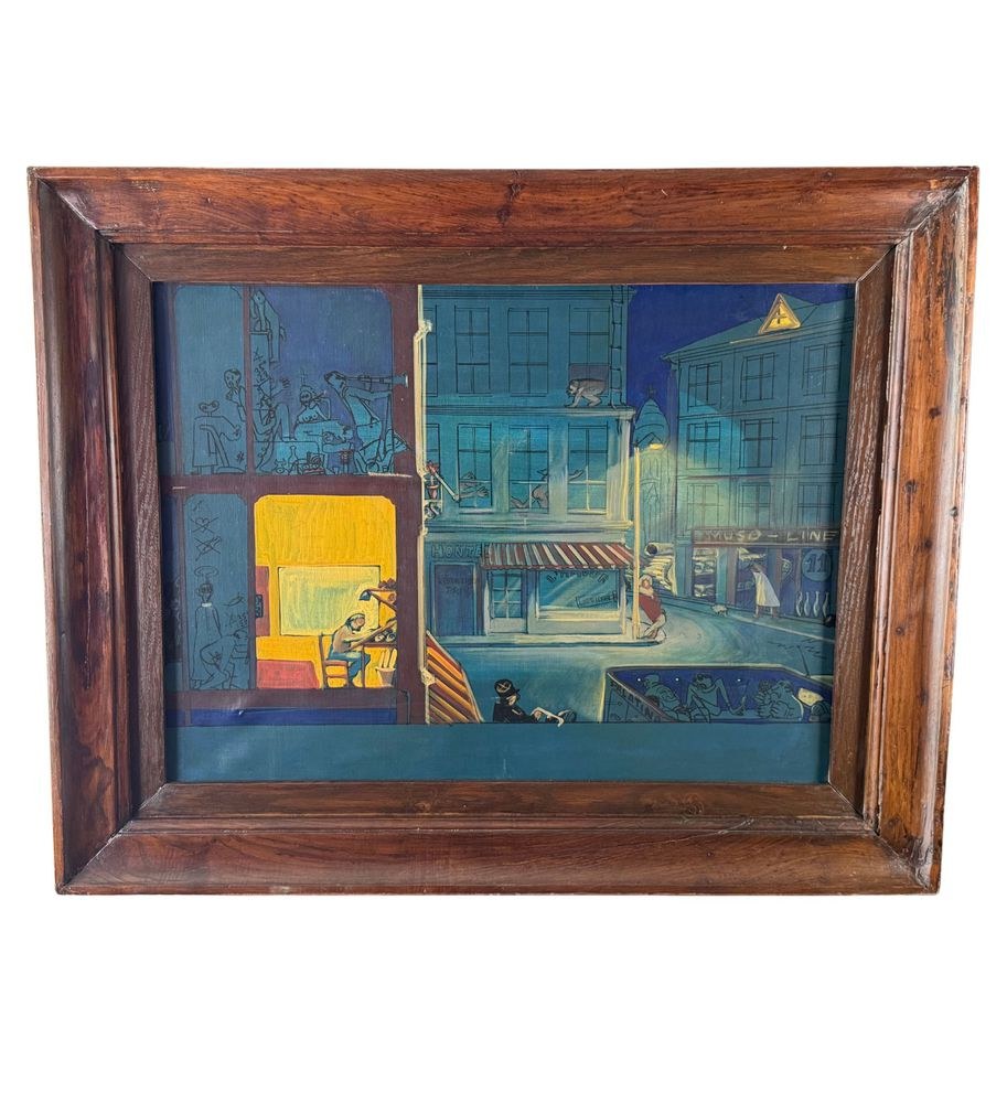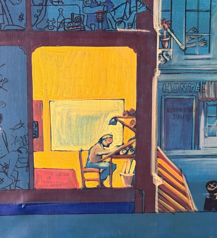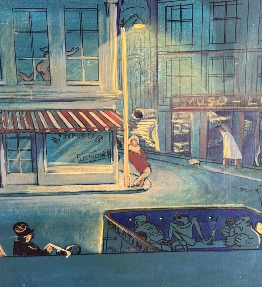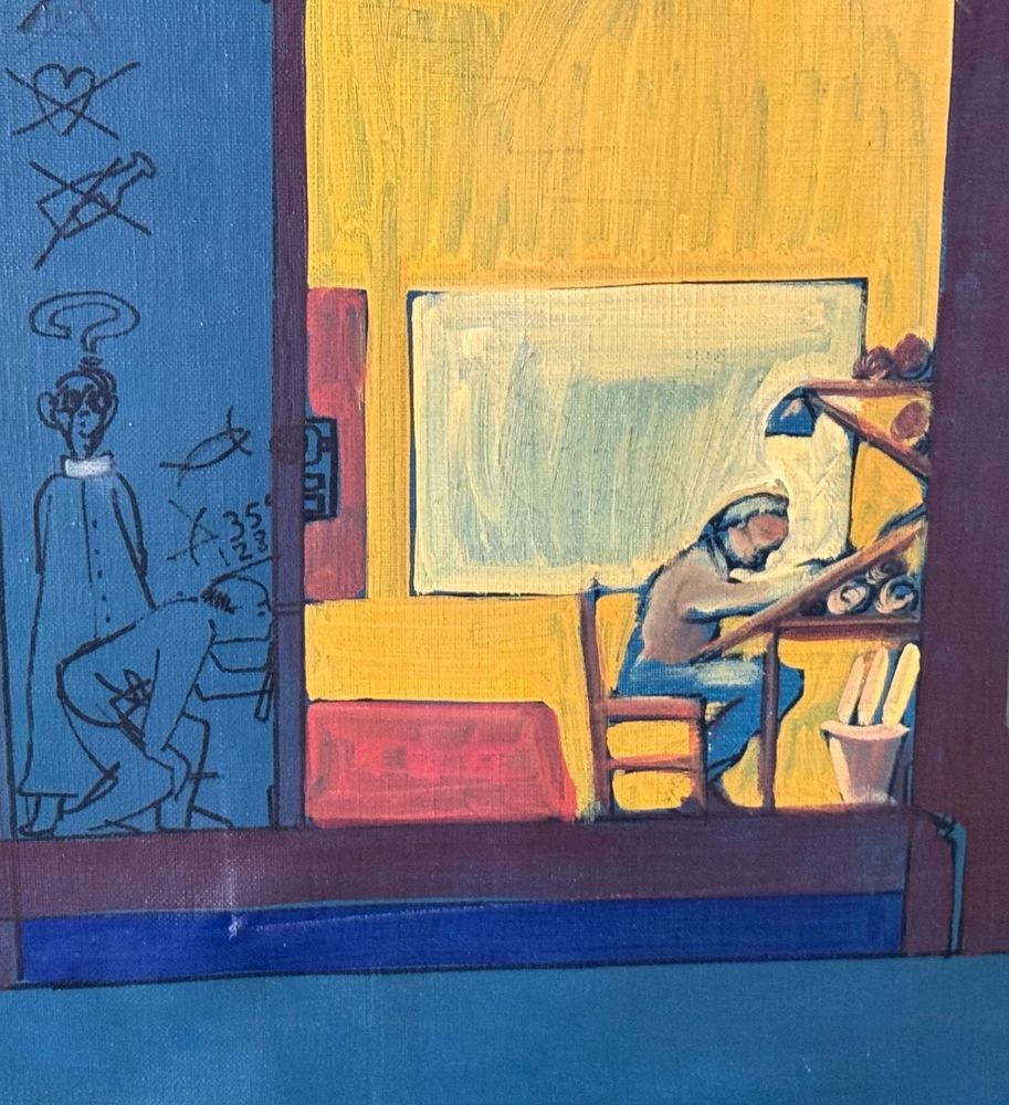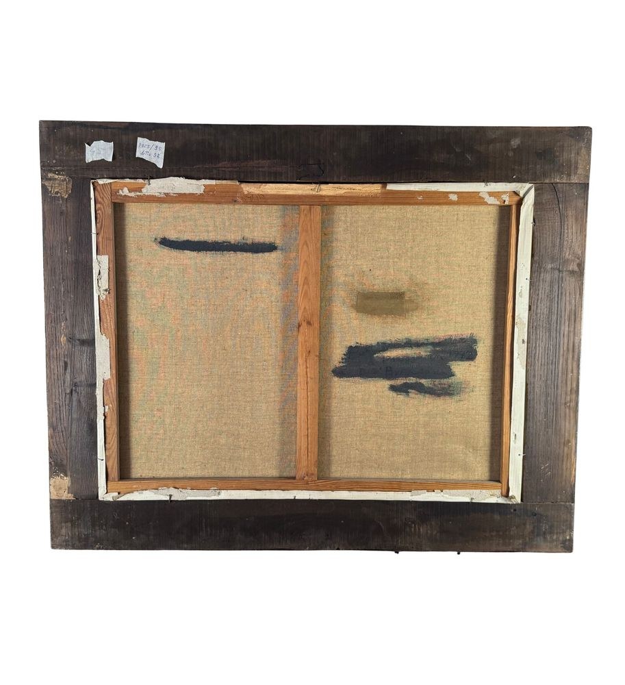 Oil painting on canvas, Italian school, 20th century, depicting a scene of everyday life. Dimensions including frame: 100x81 cm. Dimensions inside the frame: 81x61 cm. By an anonymous artist. The artwork is in good condition.