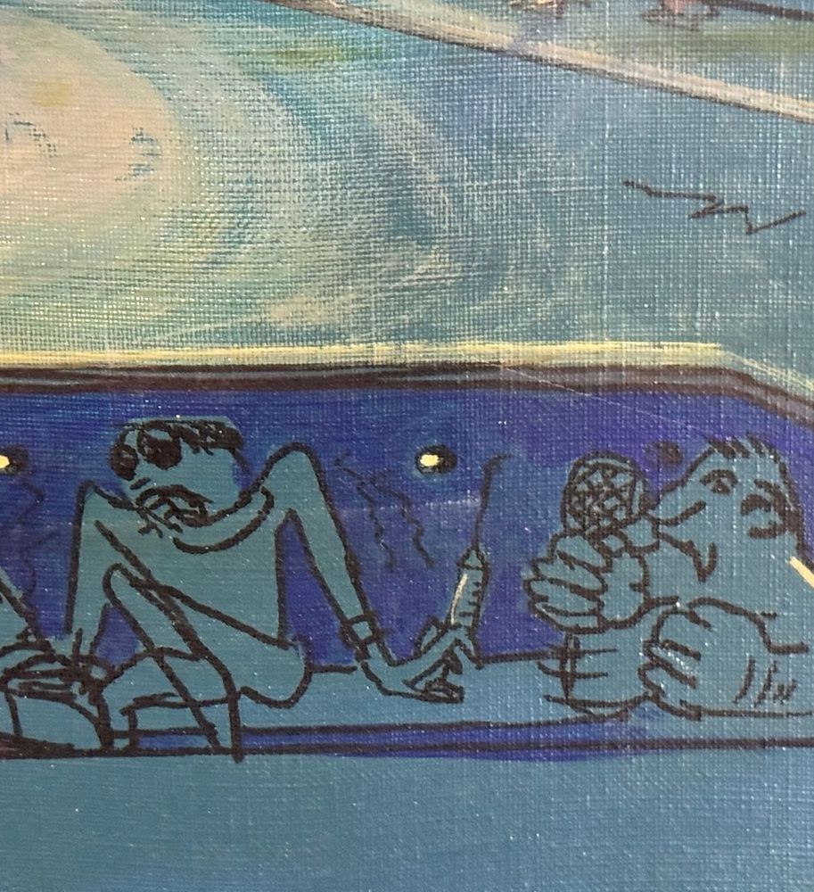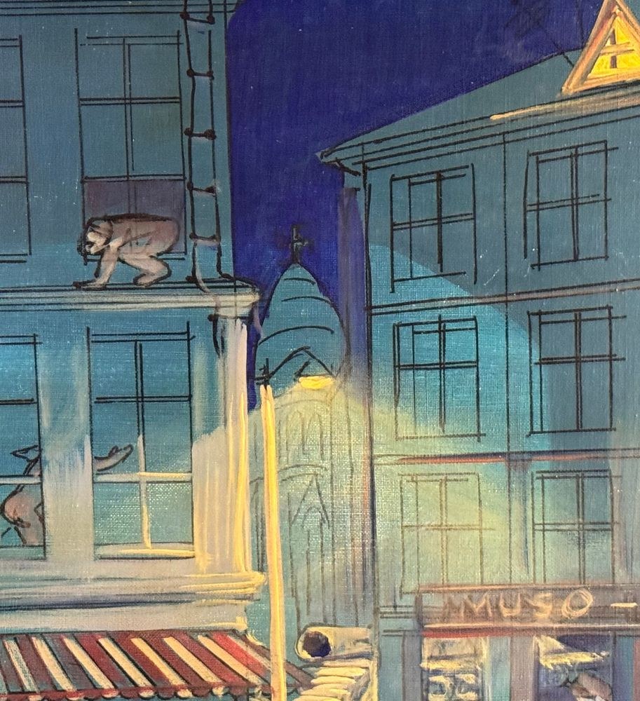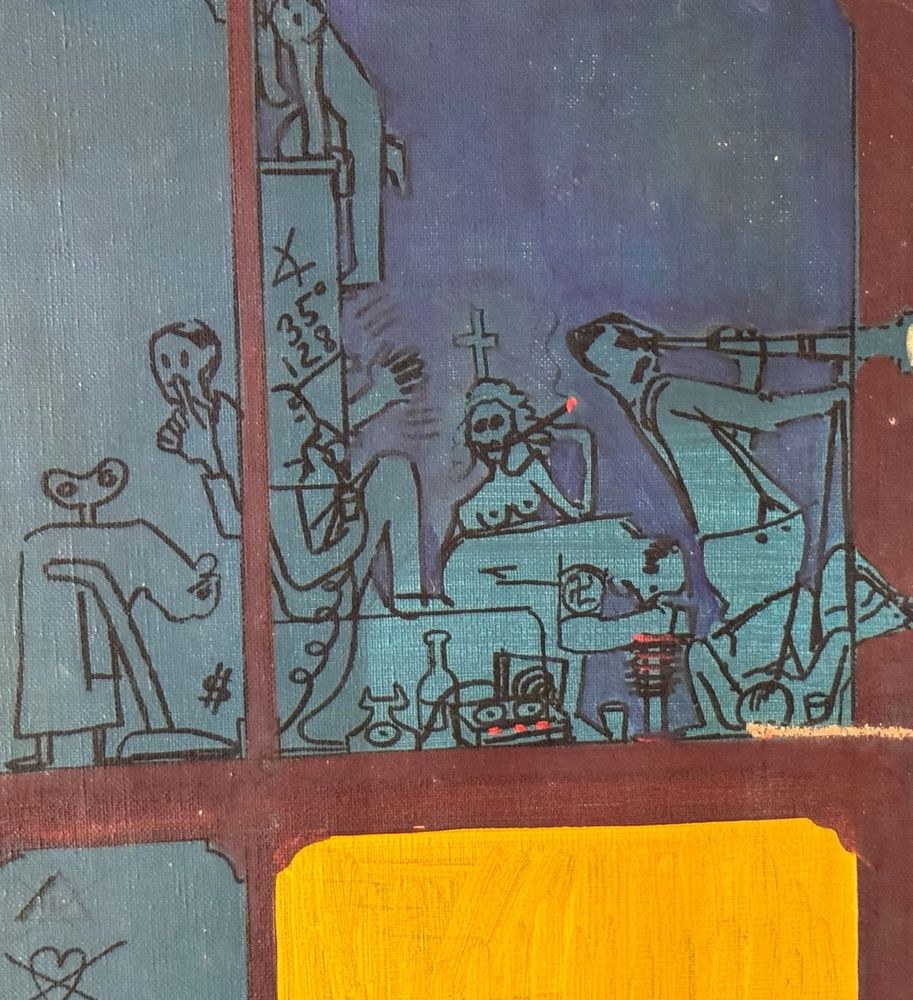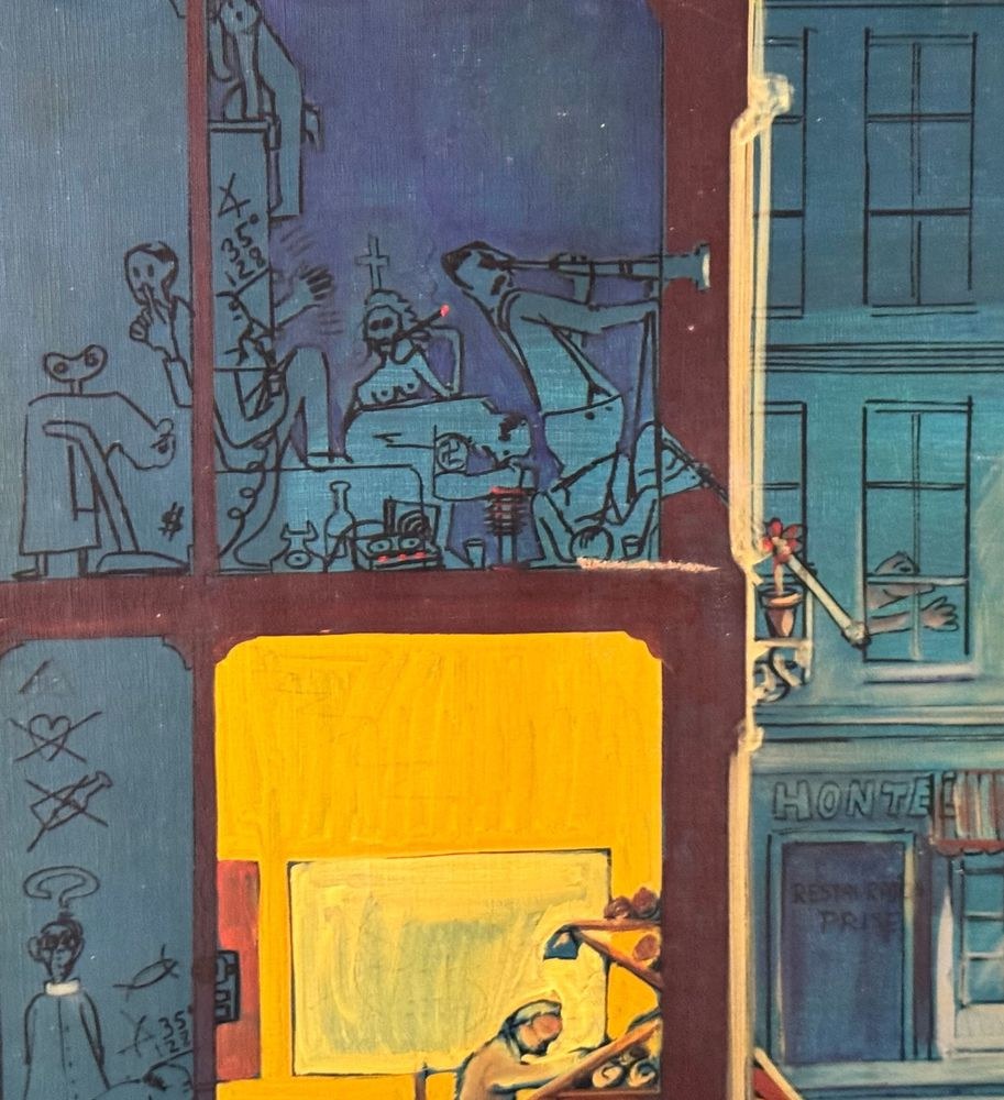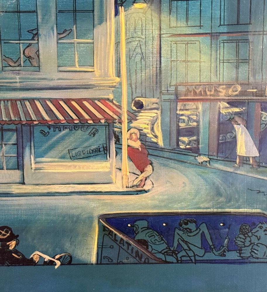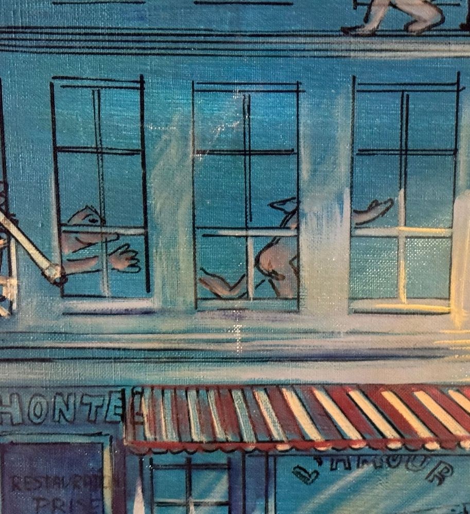 Oil painting on canvas, Italian school, 20th century, depicting a scene of everyday life. Dimensions including frame: 100x81 cm. Dimensions inside the frame: 81x61 cm. By an anonymous artist. The artwork is in good condition.