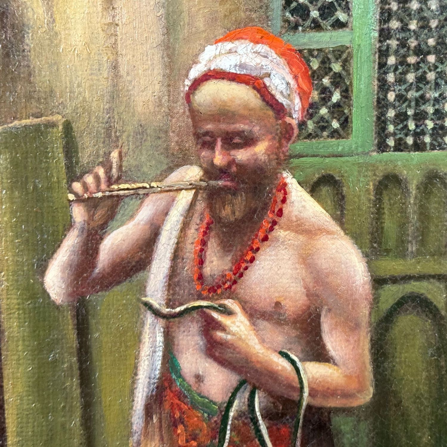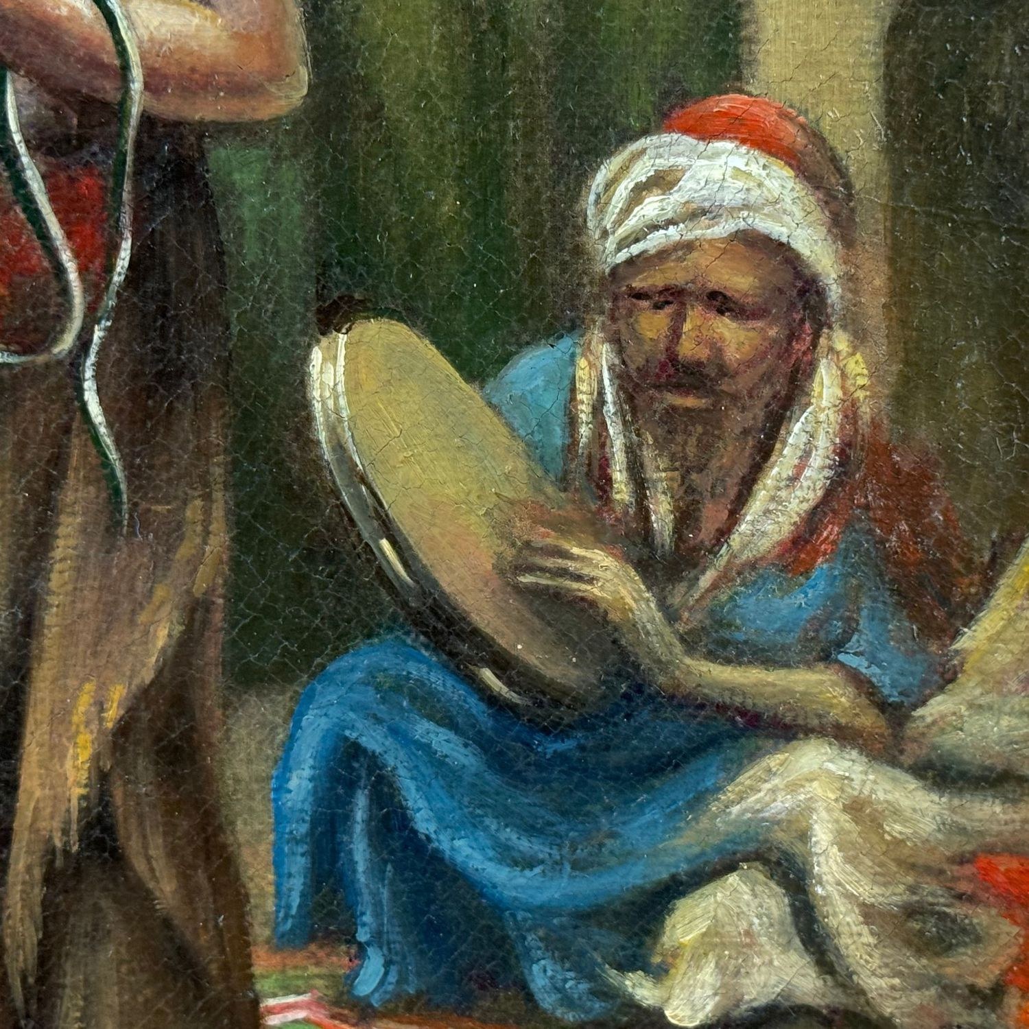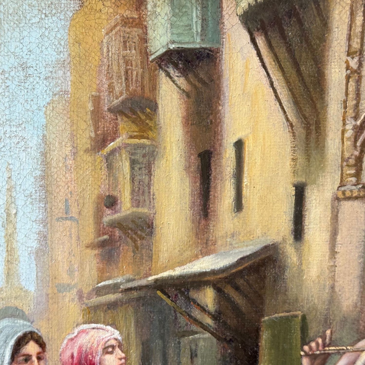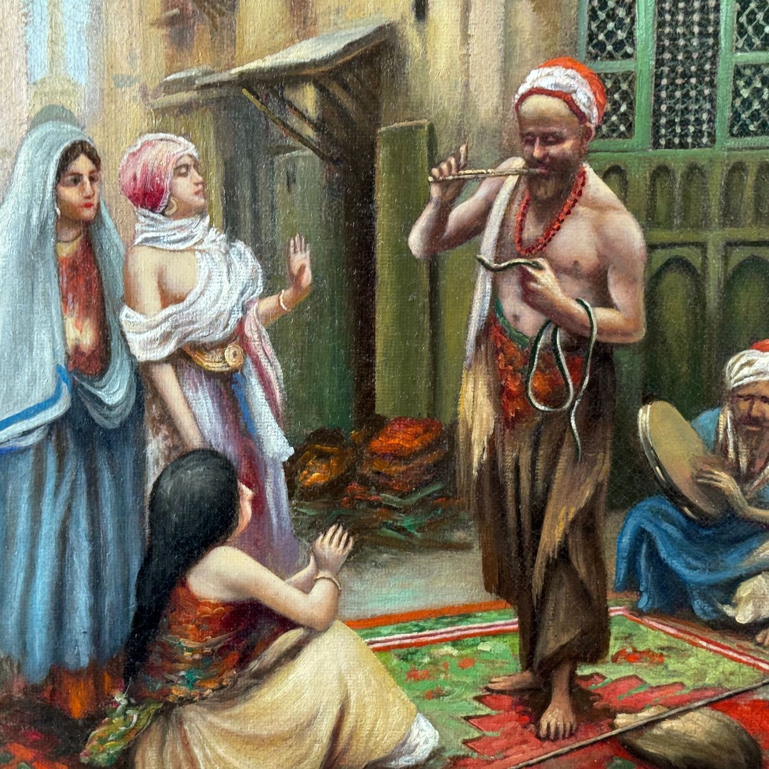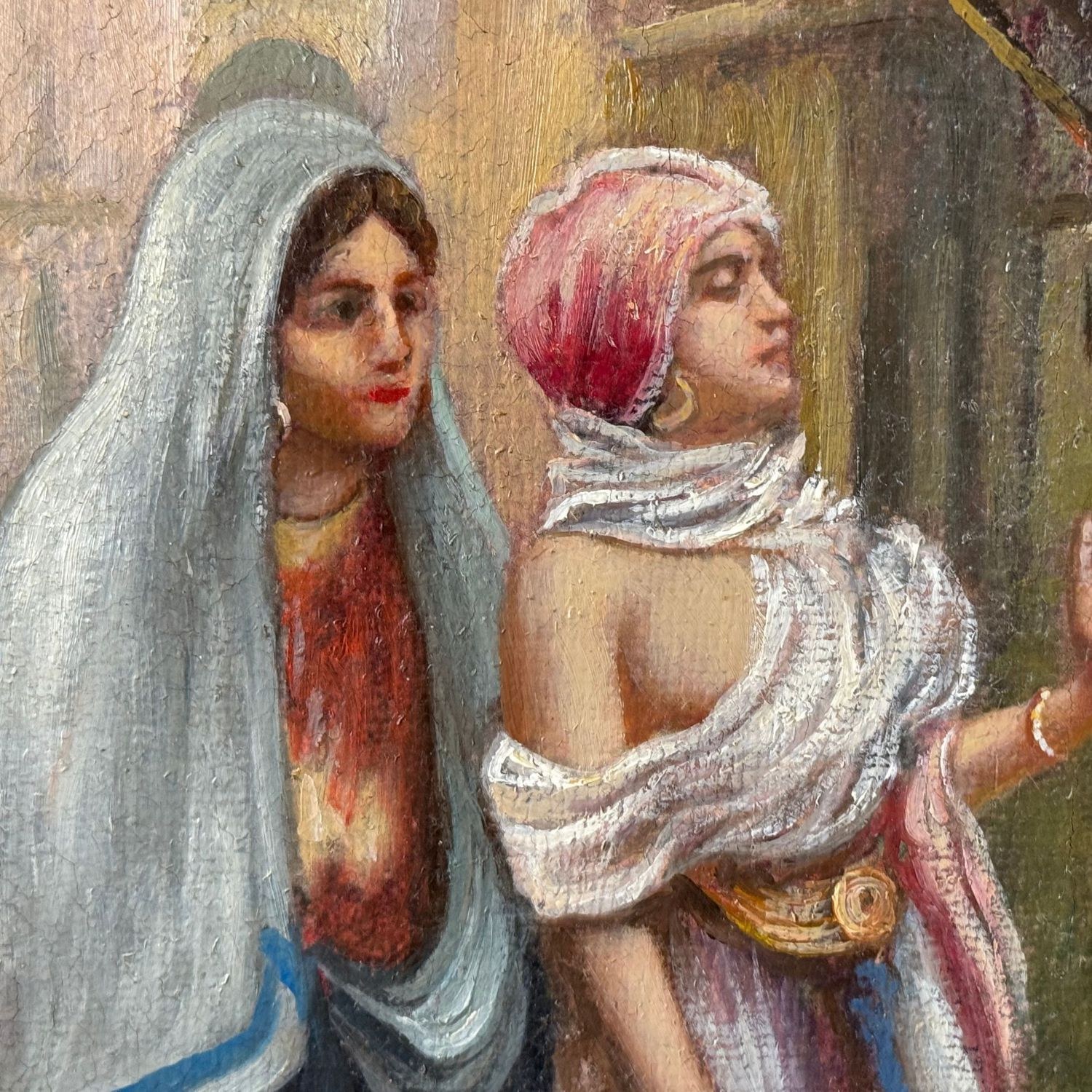 Oil painting on canvas, from the 20th century, Italian school, depicting an oriental scene with figures. Dimensions: 47x55 cm. By an anonymous artist. The artwork is in good condition.