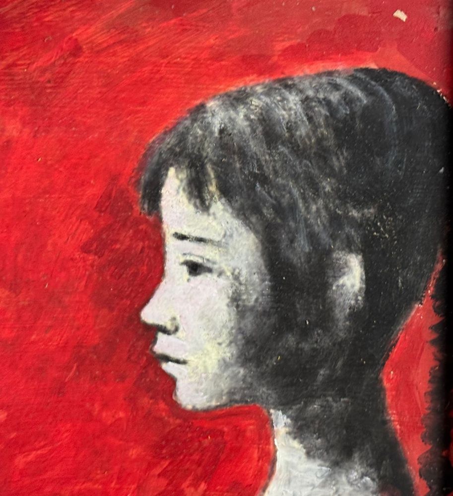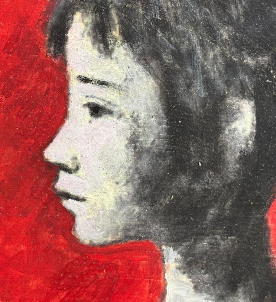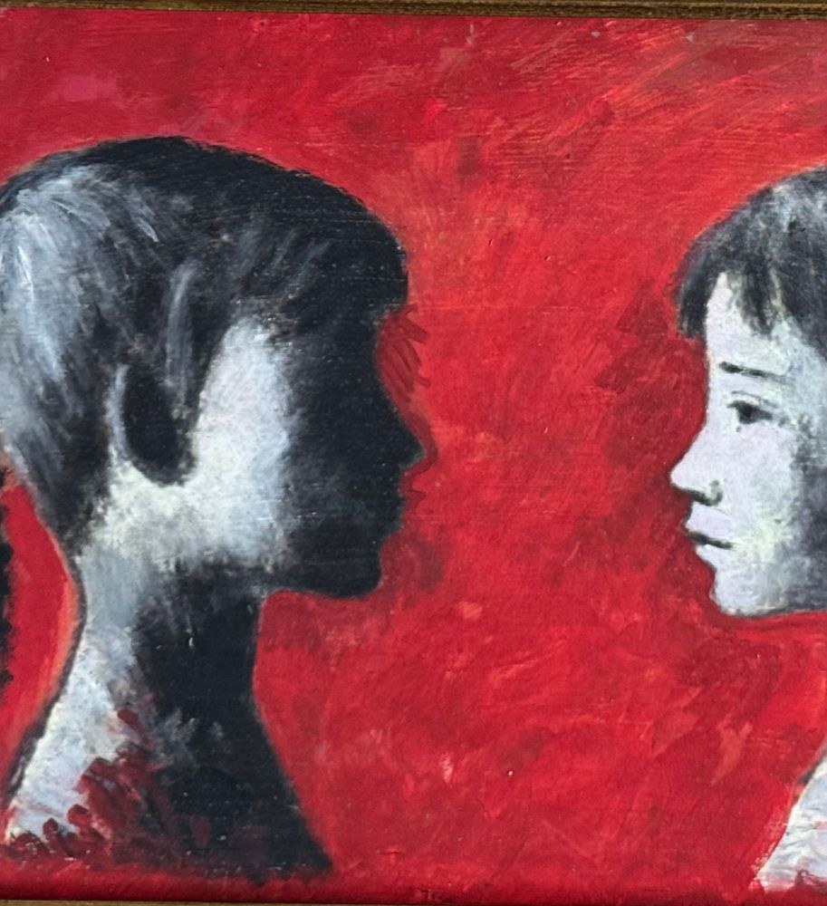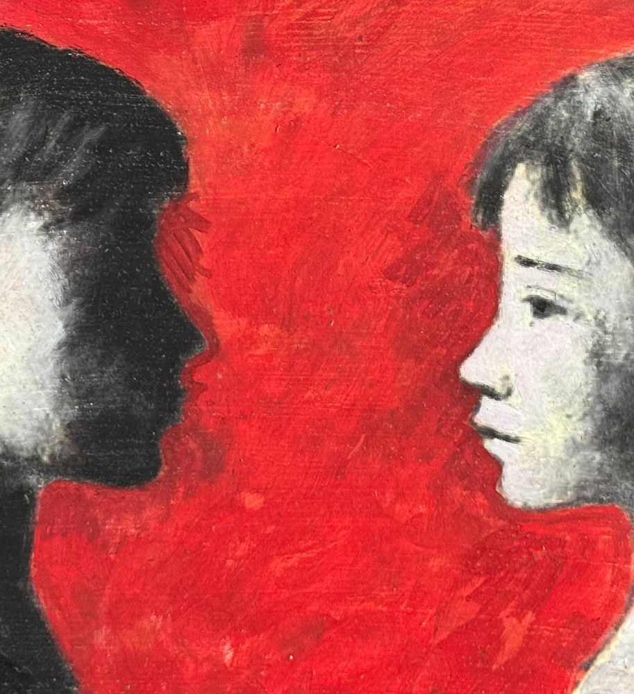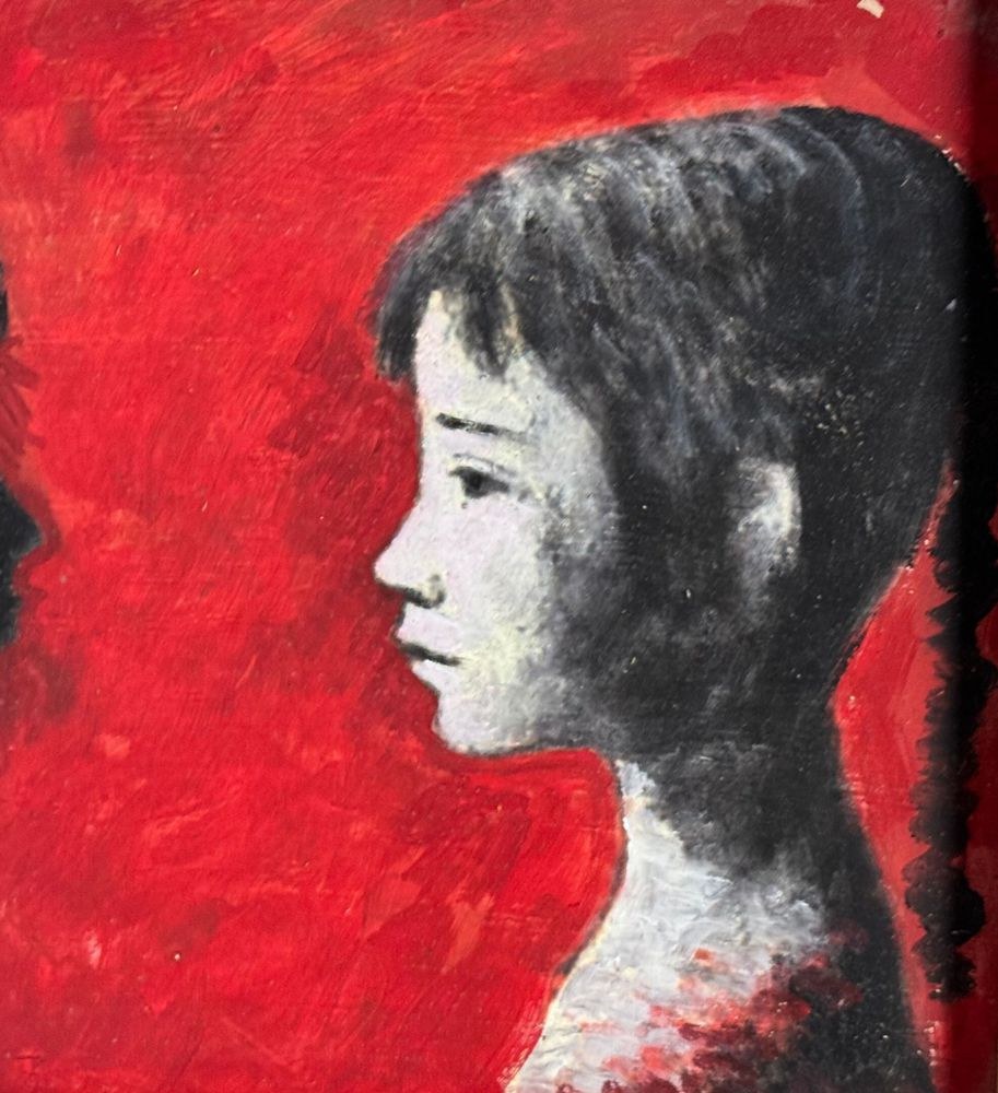 Oil painting on panel, 20th century period, Italian school depicting Two faces. Dimensions including frame: 62x52 cm. Internal frame dimensions: 35x45 cm. Anonymous artist. Work in good condition.